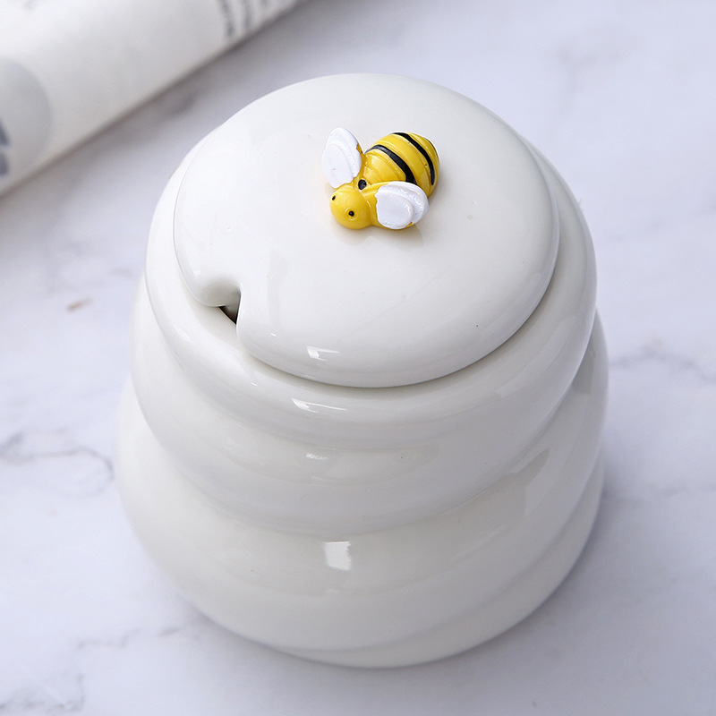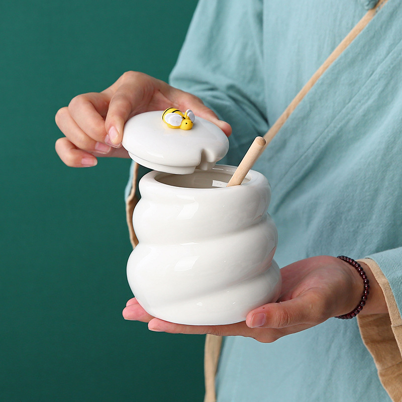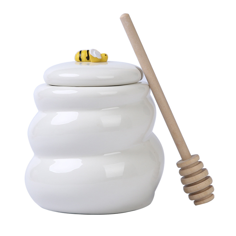 跨境ins陶瓷蜂蜜罐 带搅拌棒 带盖 Honey风礼品罐 跨境包装