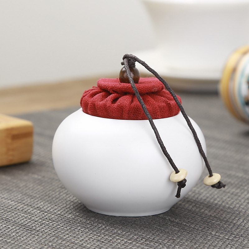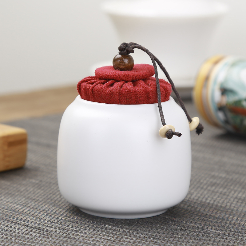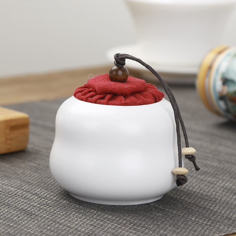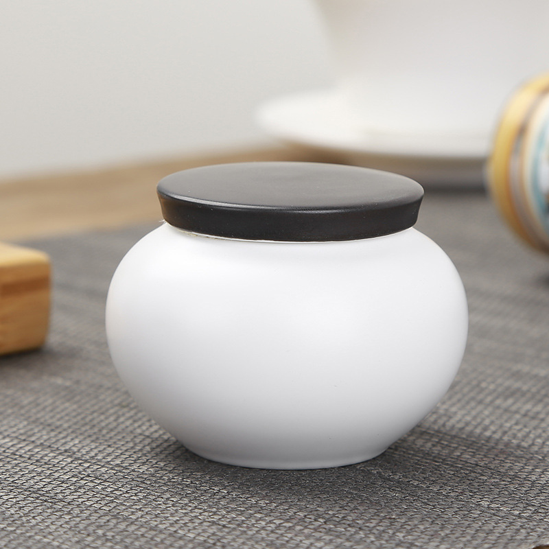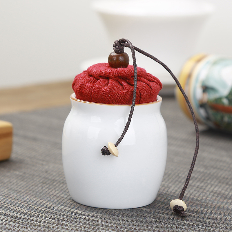 哑光定窑陶瓷小号茶叶罐便携迷你存储罐药膏罐礼品密封罐量大价优