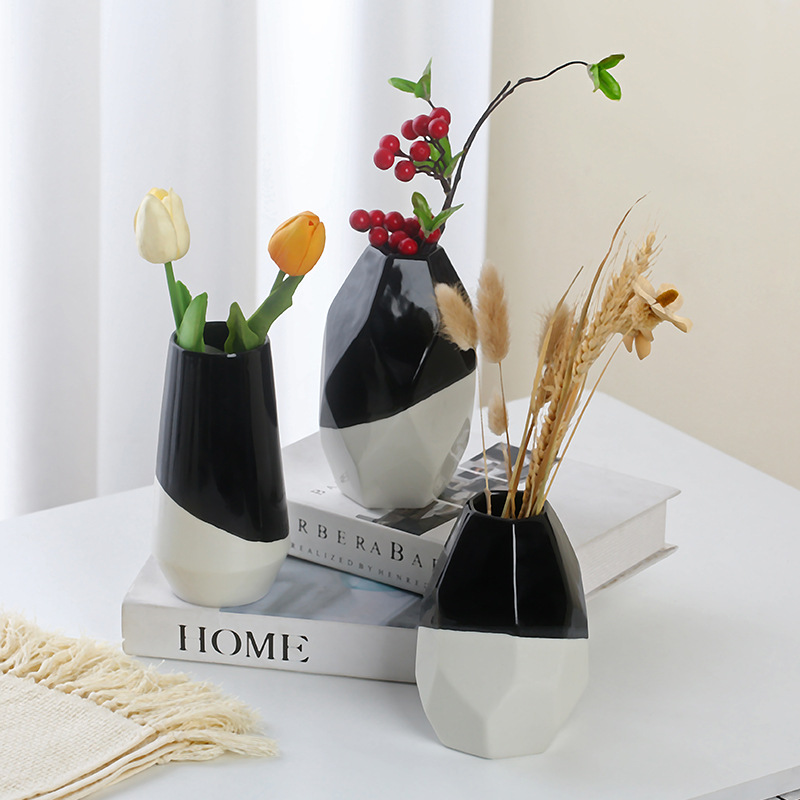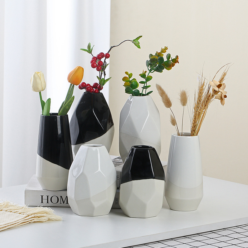 创意跨境陶瓷花瓶半色欧式外贸摆件酒店办公室家居出口花插批发