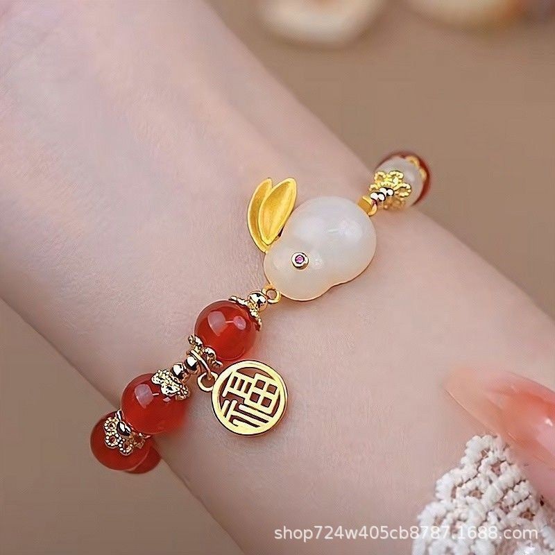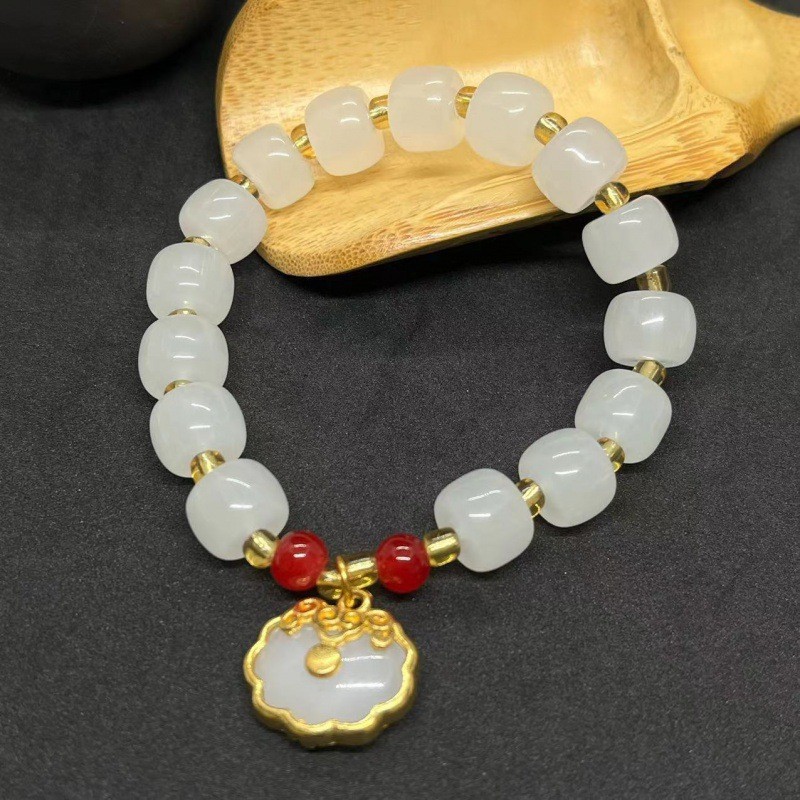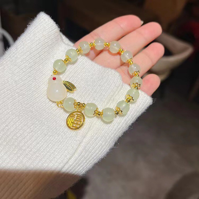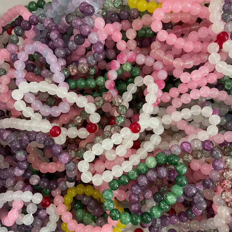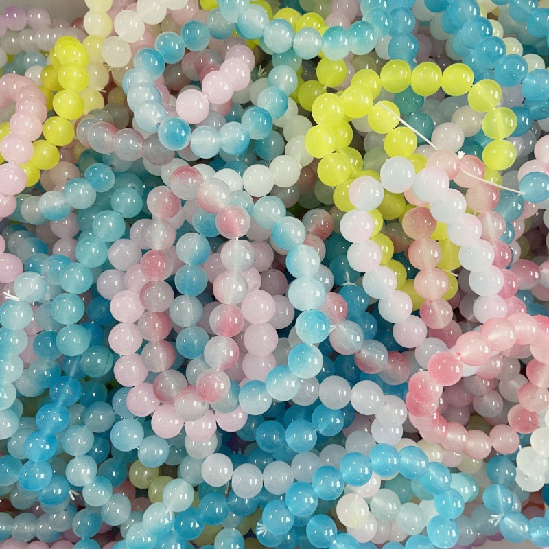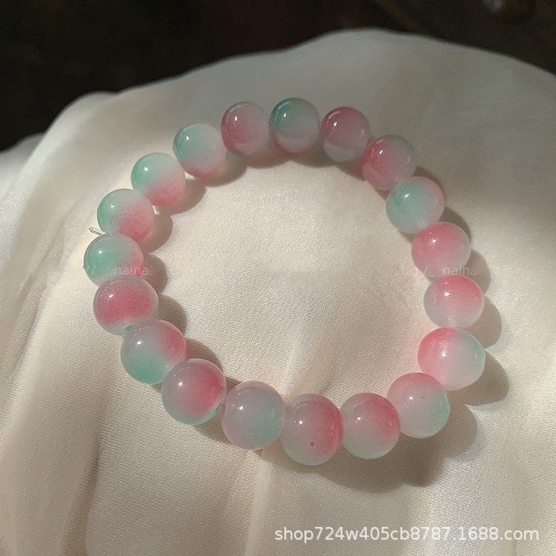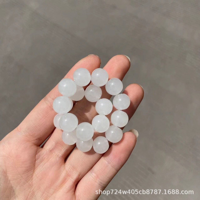 冰透白玉色玻璃质感透明手链绕指柔盘玩圆珠手串礼物配饰品送女友