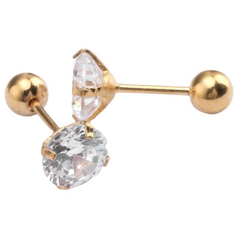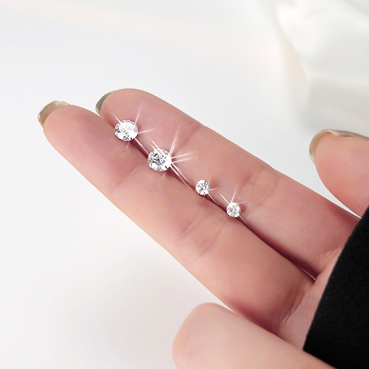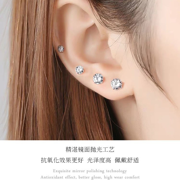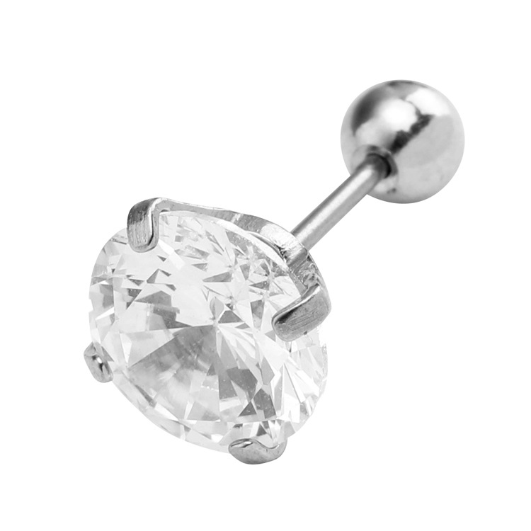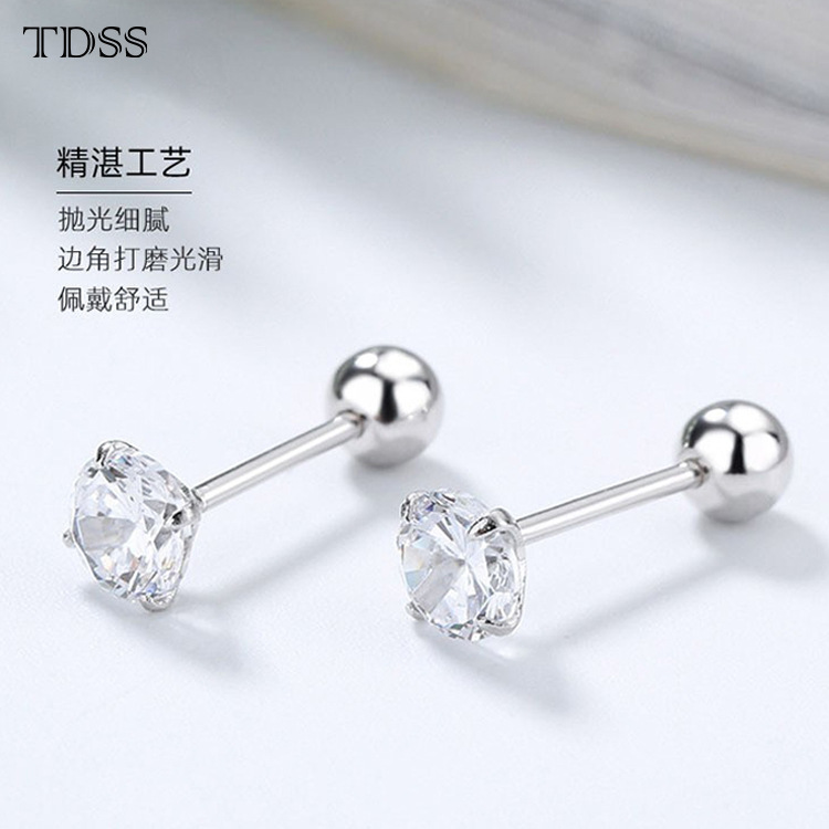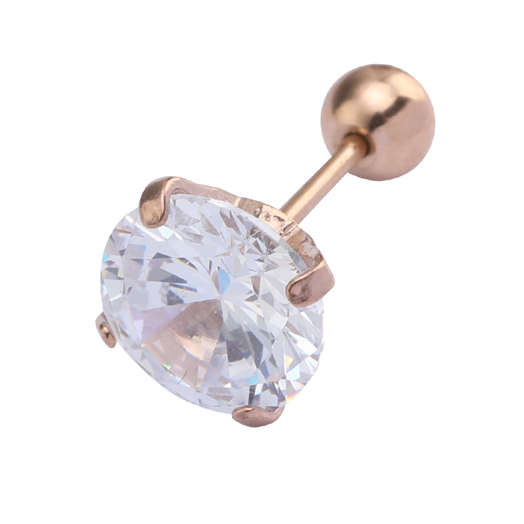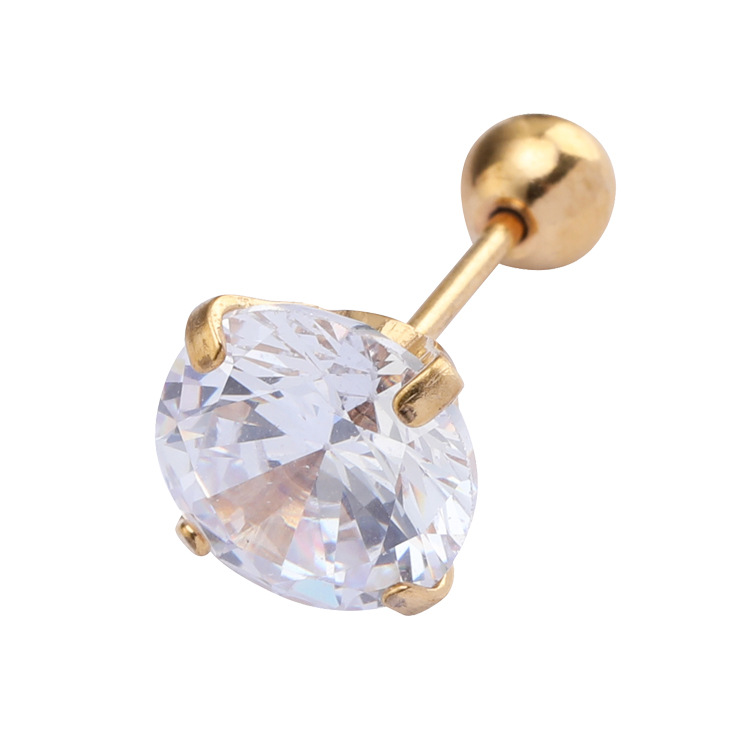 不锈钢饰品锆石耳钉四爪包钻钛钢真空电镀18K不掉色耳骨钉批发