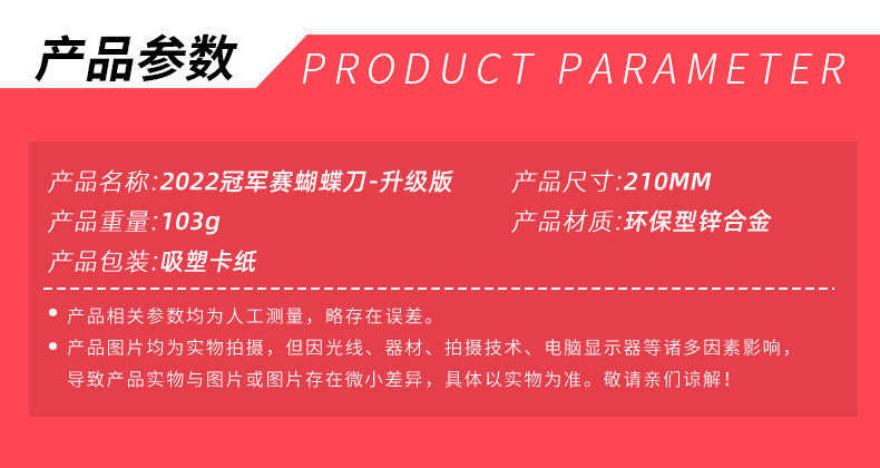 瓦罗兰特游戏周边 2022版蝴蝶甩刀升级版合金武器模型玩具21cm