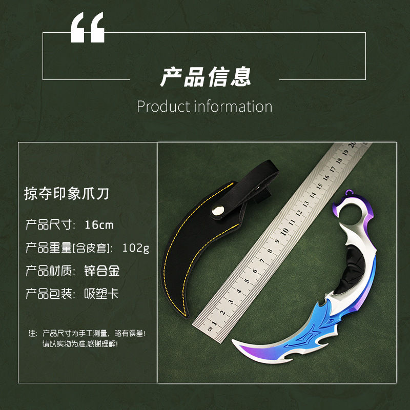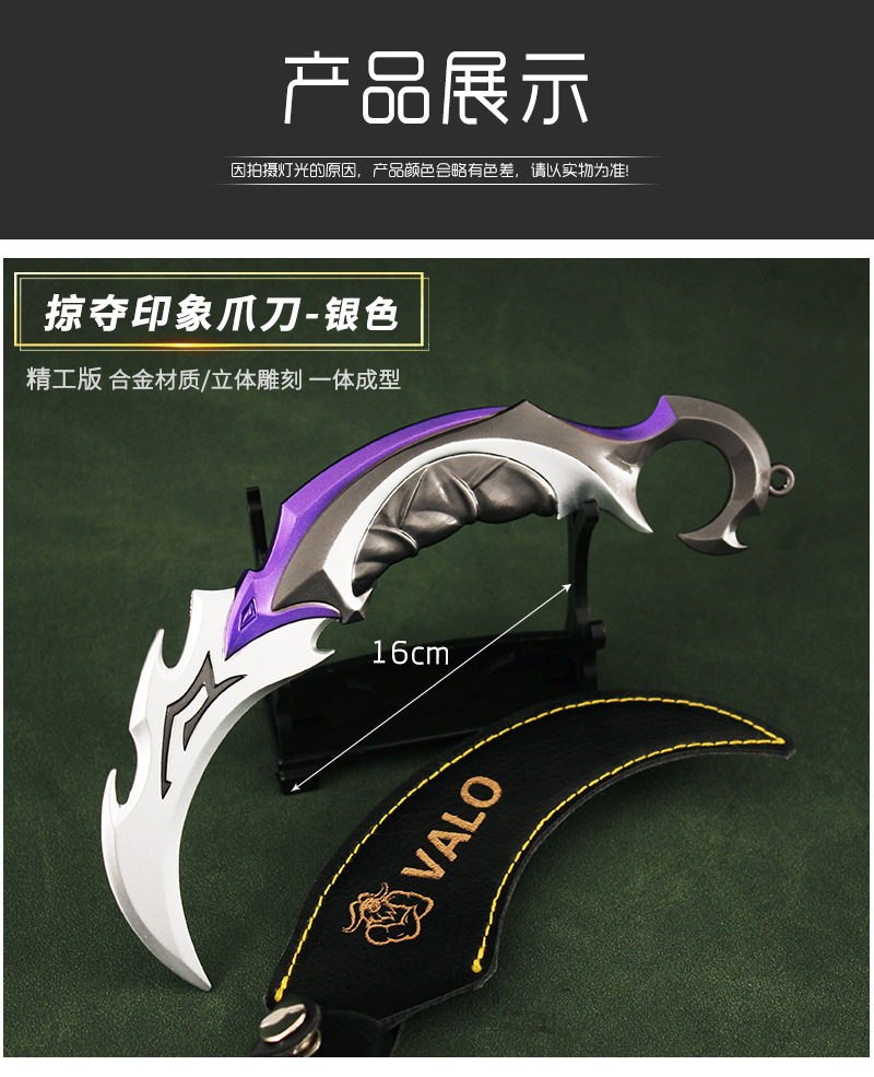 瓦罗兰特周边 大号掠夺印象暗影秘宗爪刀带皮套金属模型玩具16cm