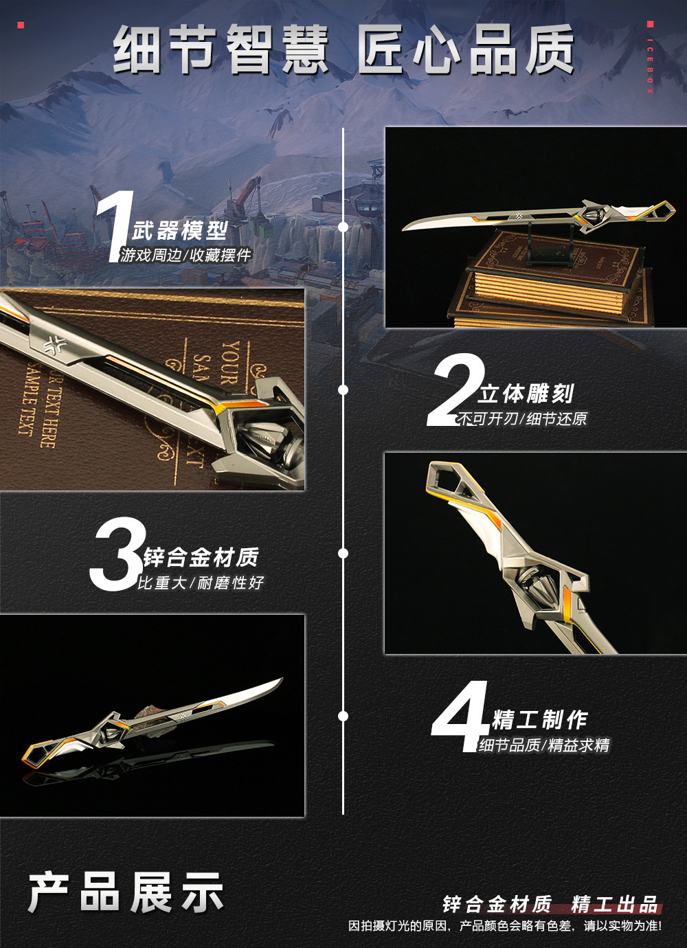 瓦罗兰特周边 2024冠军赛战刀幻影直刀武器模型合金玩具摆件28cm