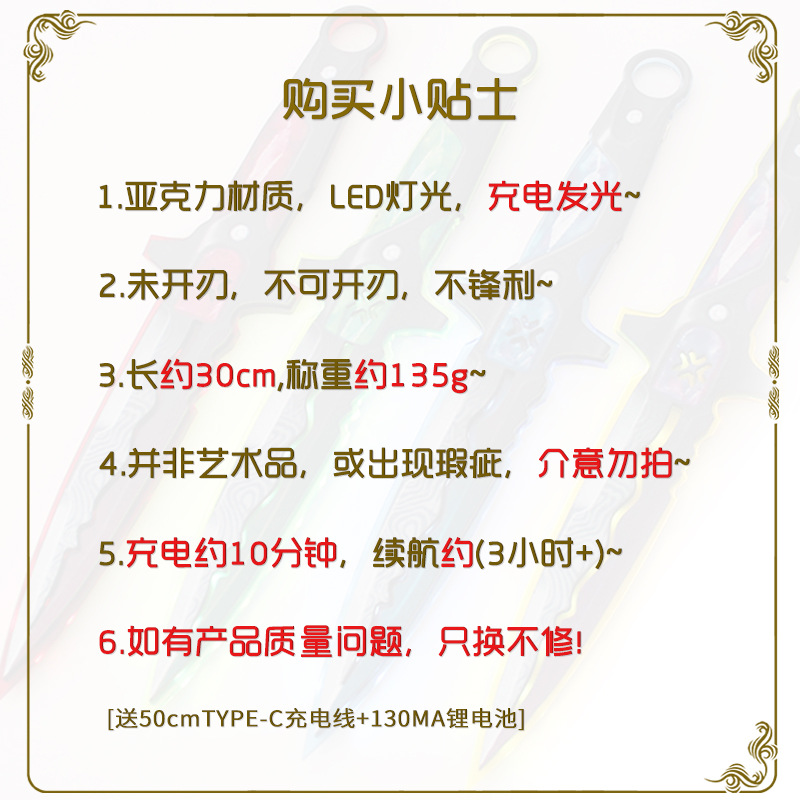 瓦罗兰特周边 无畏契约怜悯之刃亚克力版武器模型充电发光玩具