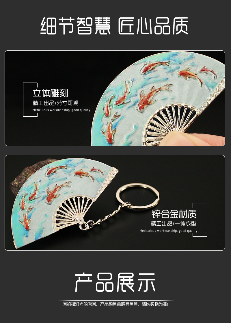 瓦罗兰特周边 无畏契约挂件金属 澄湖潋艳 太极扇子合金钥匙扣7cm