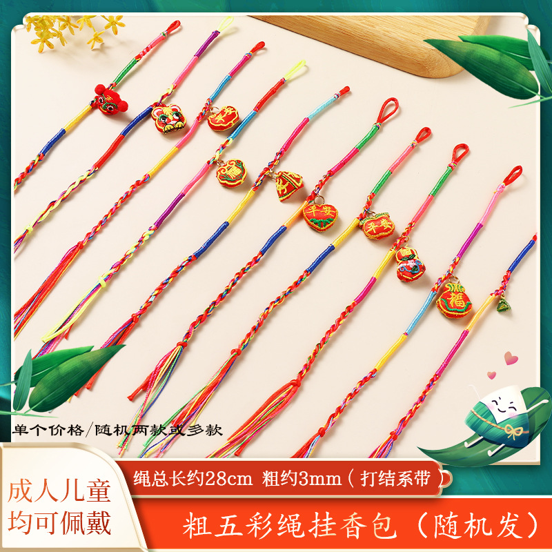 端午节五彩绳手工编织儿童小粽子手链五月节虎头香包手绳批发礼品