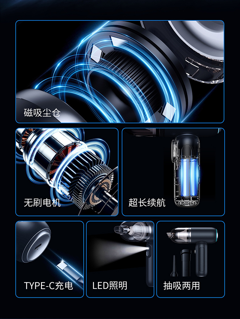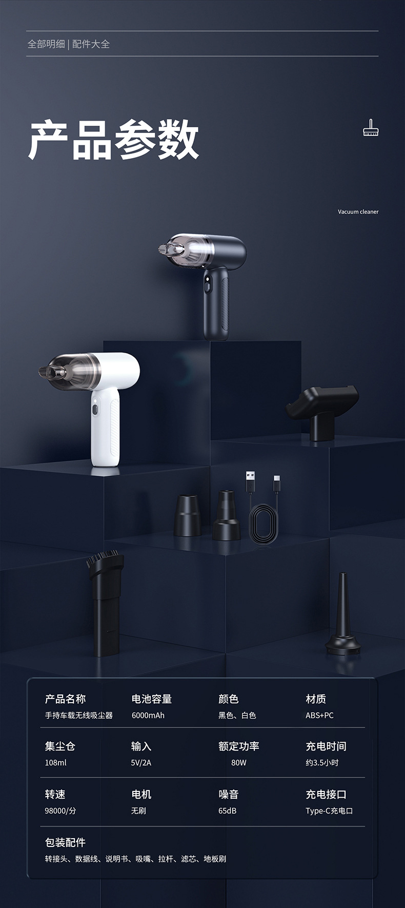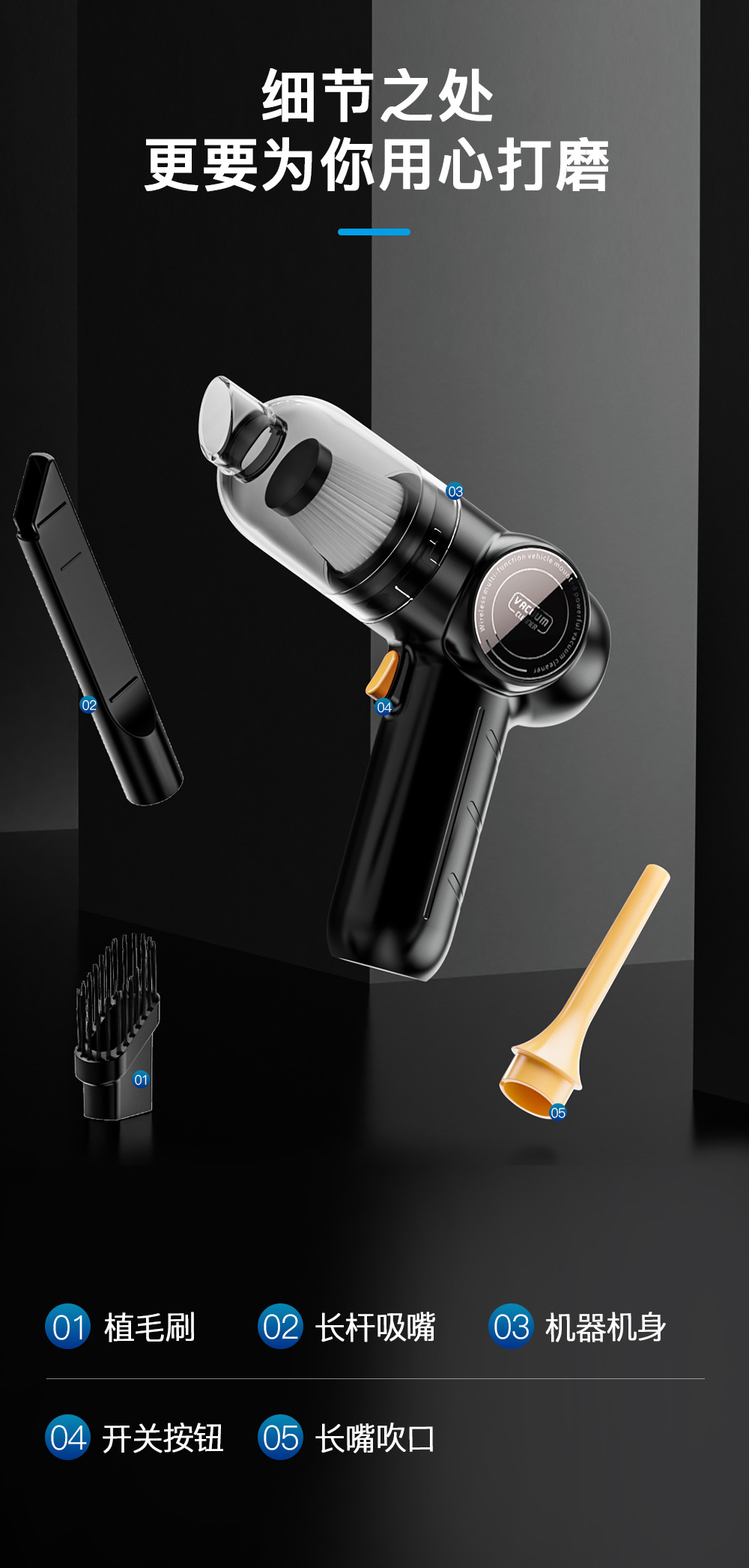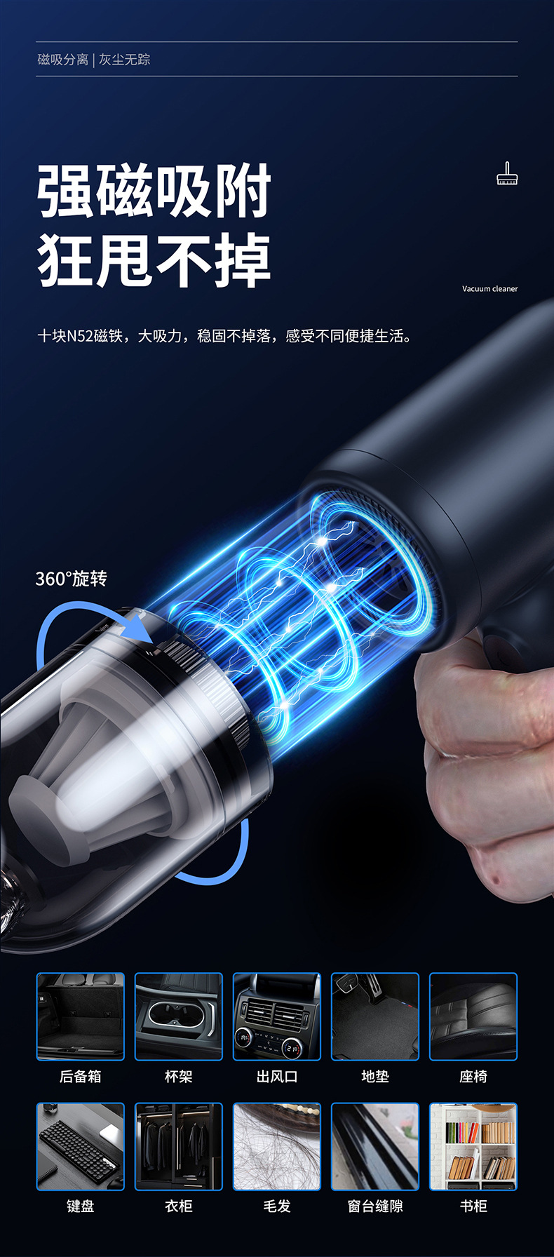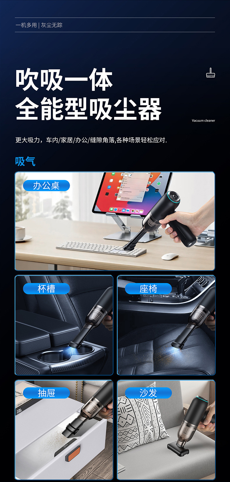 2024跨境外贸新款无线车载吸尘器超大吸力120W大功率吸吹两用