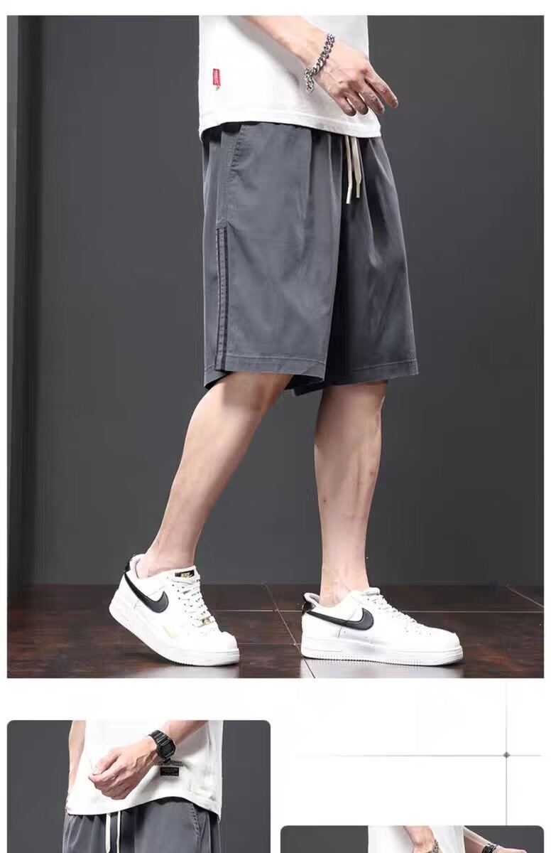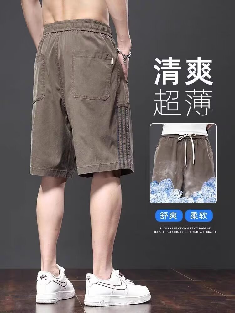 冰丝休闲短裤男士夏季薄款宽松潮男休闲中裤子高档过膝潮流五分裤