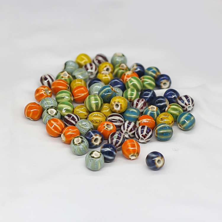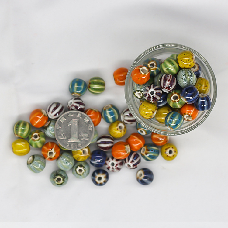 花釉豹纹南瓜陶瓷珠 串珠饰品配件 散珠手链项链材料包配珠尾珠