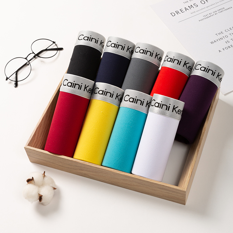 厂家批发新品男士内裤平角裤纯色个性四角裤头潮牌透气现货青年