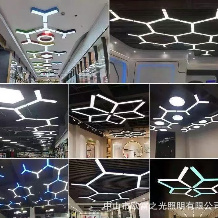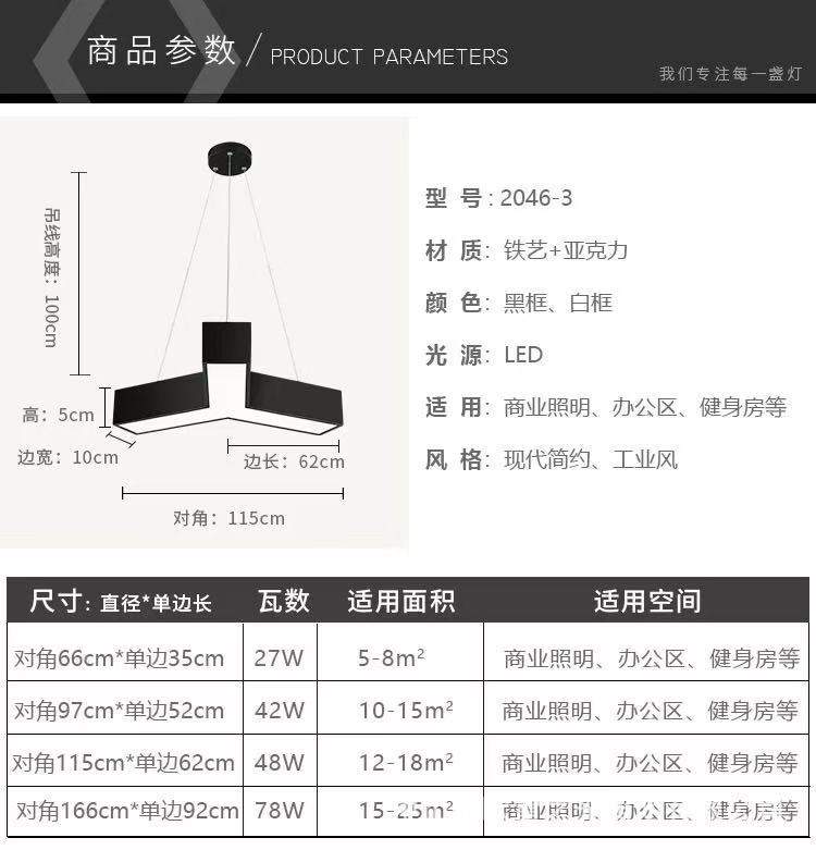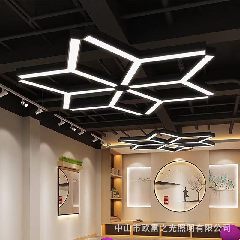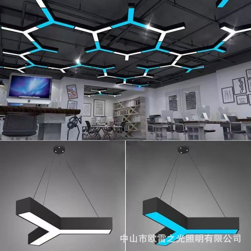 创意LED造型办公吊灯 办公室健身房商场餐厅圆形六角异型工业吊灯