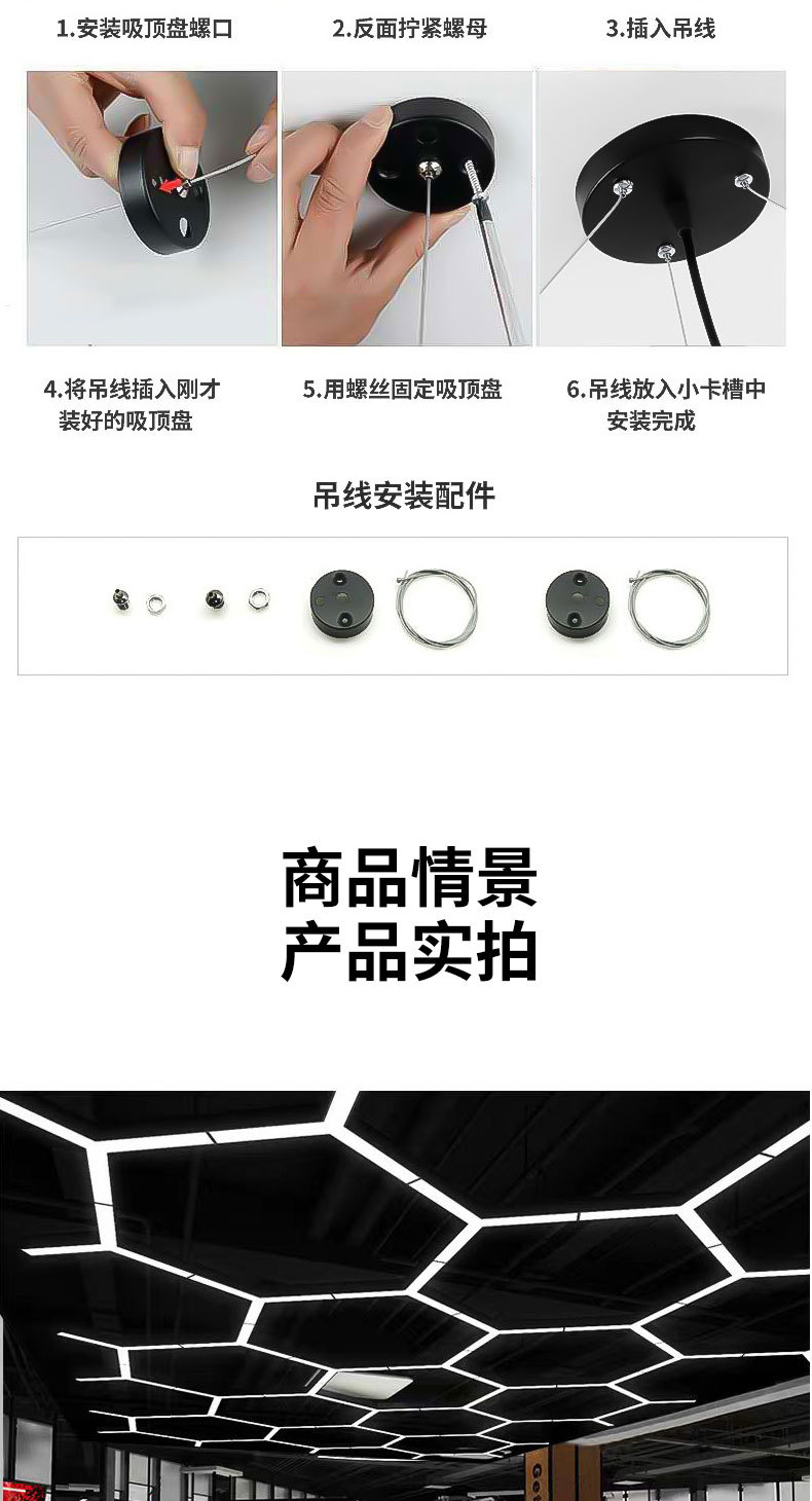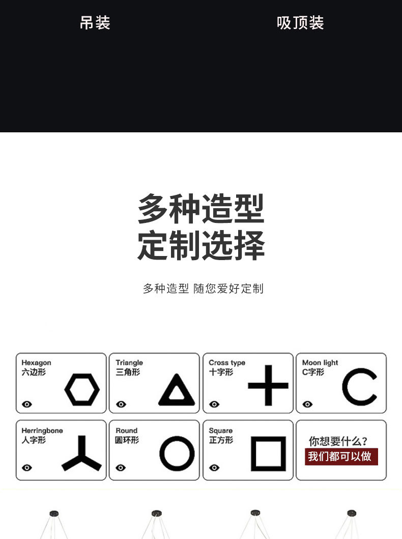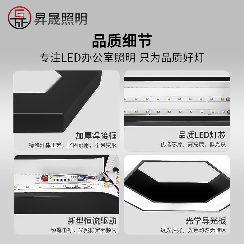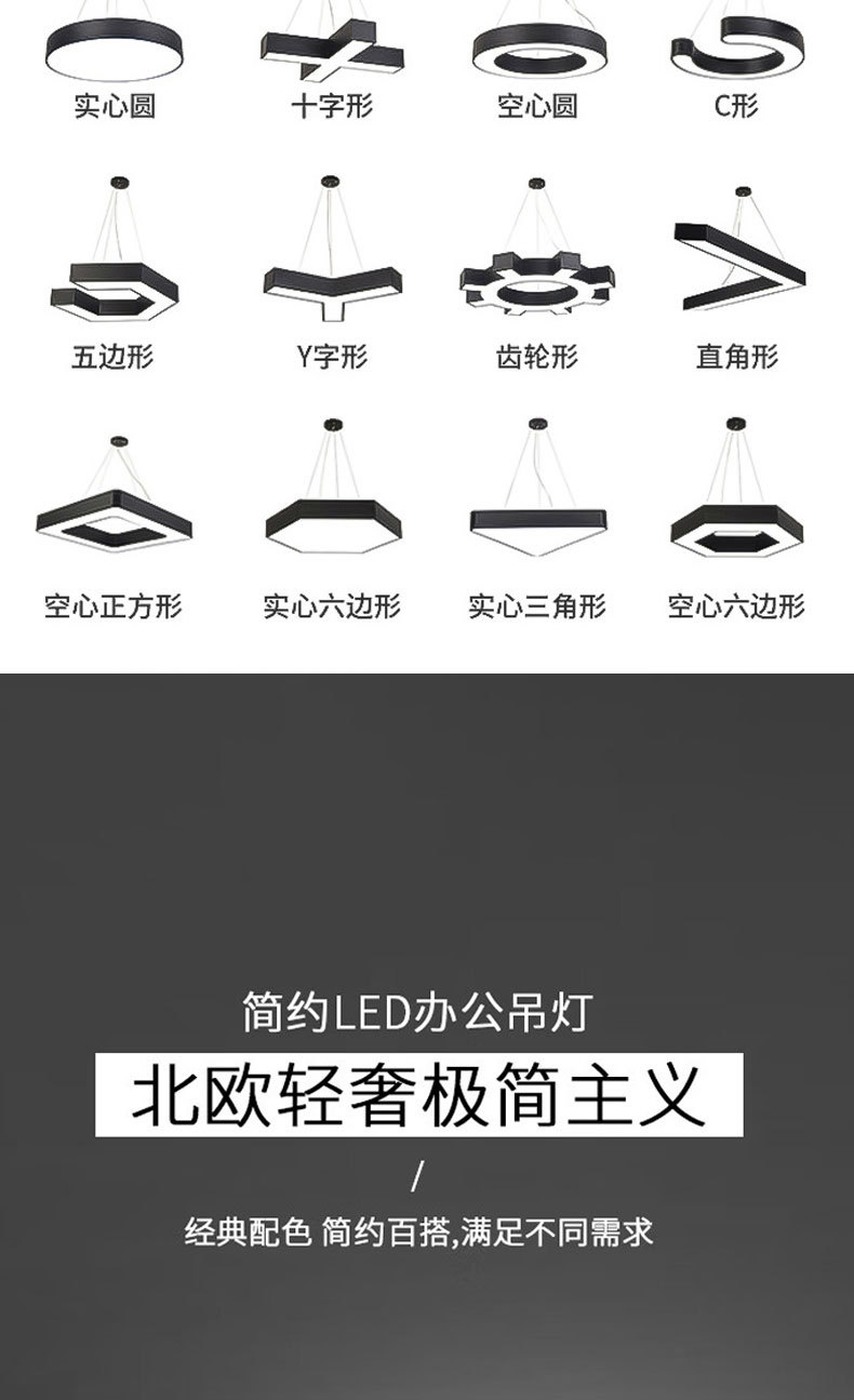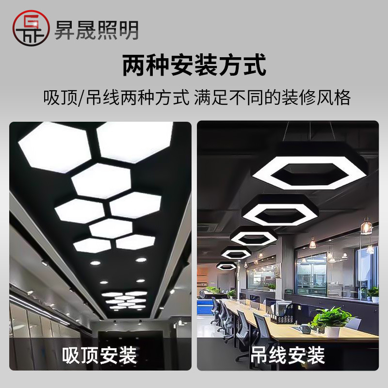 led异形灯创意六边形Y形办公室吊灯店铺商场健身房工业风造型灯具