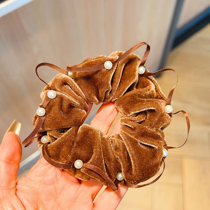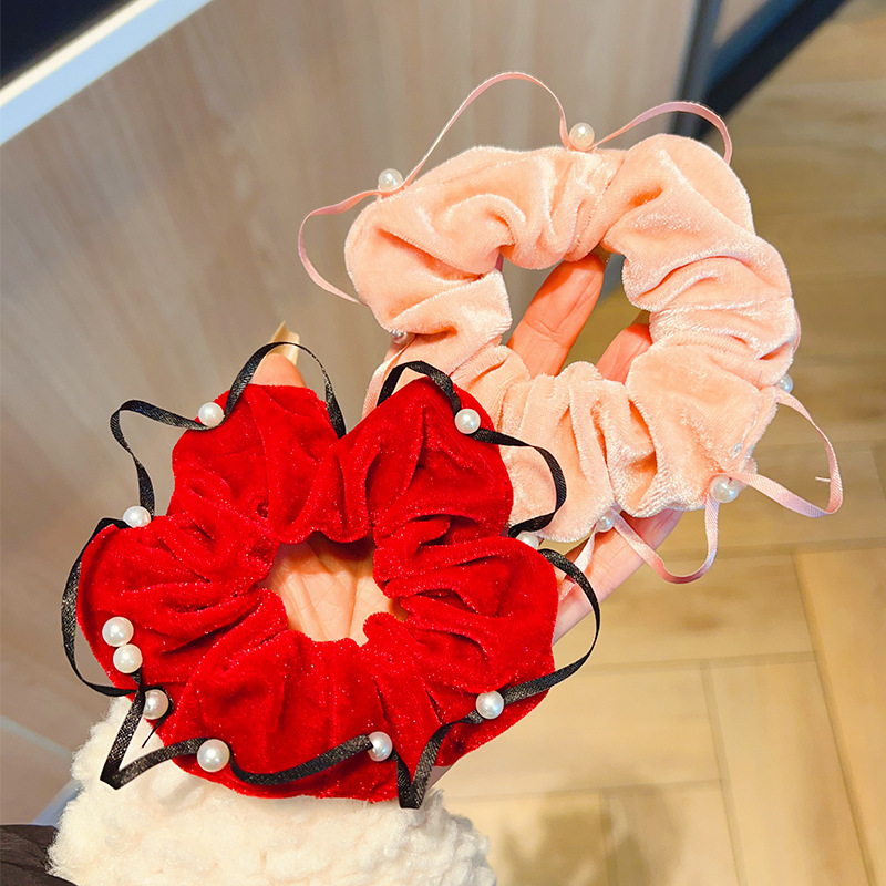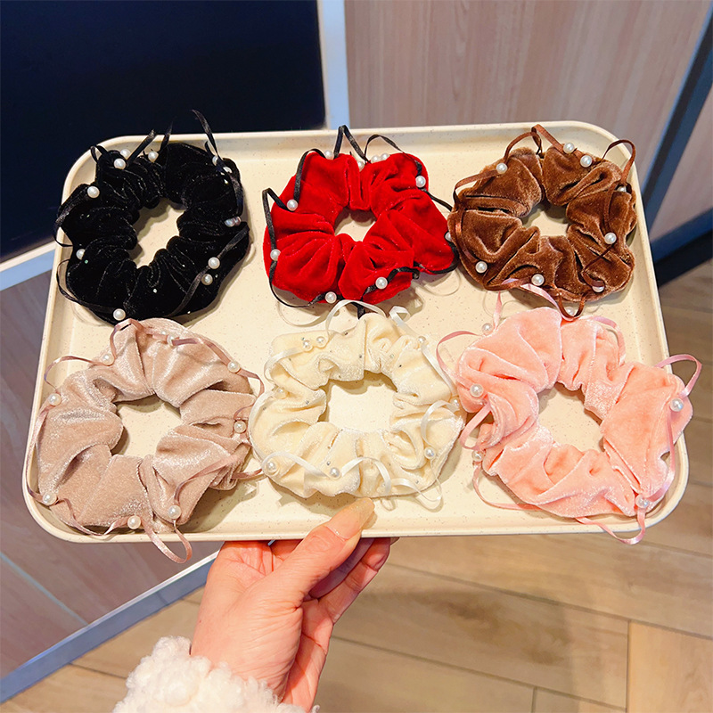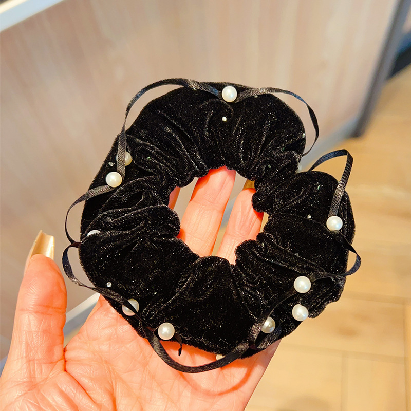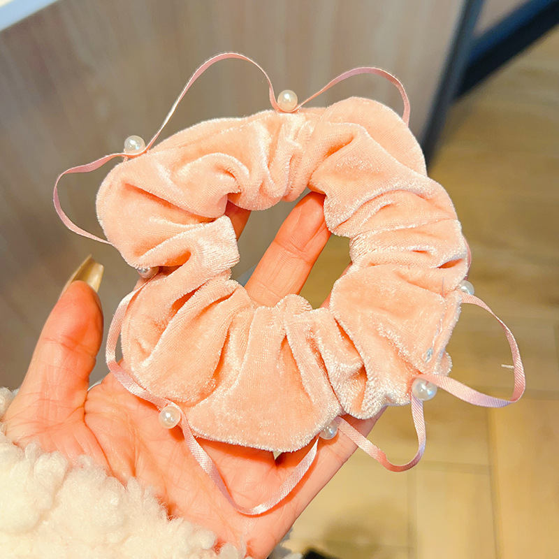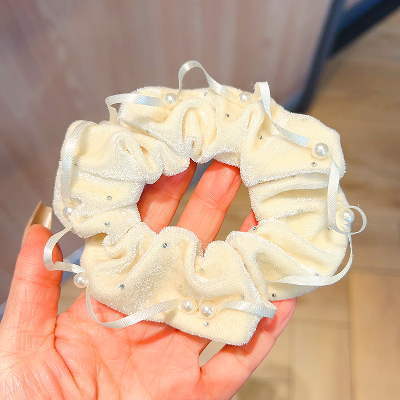 小香风新款丝绒布艺大肠发圈法式蝴蝶结珍珠发绳头绳高级感发饰
