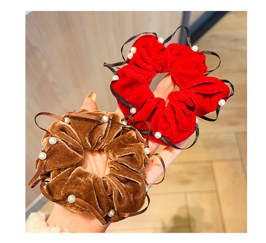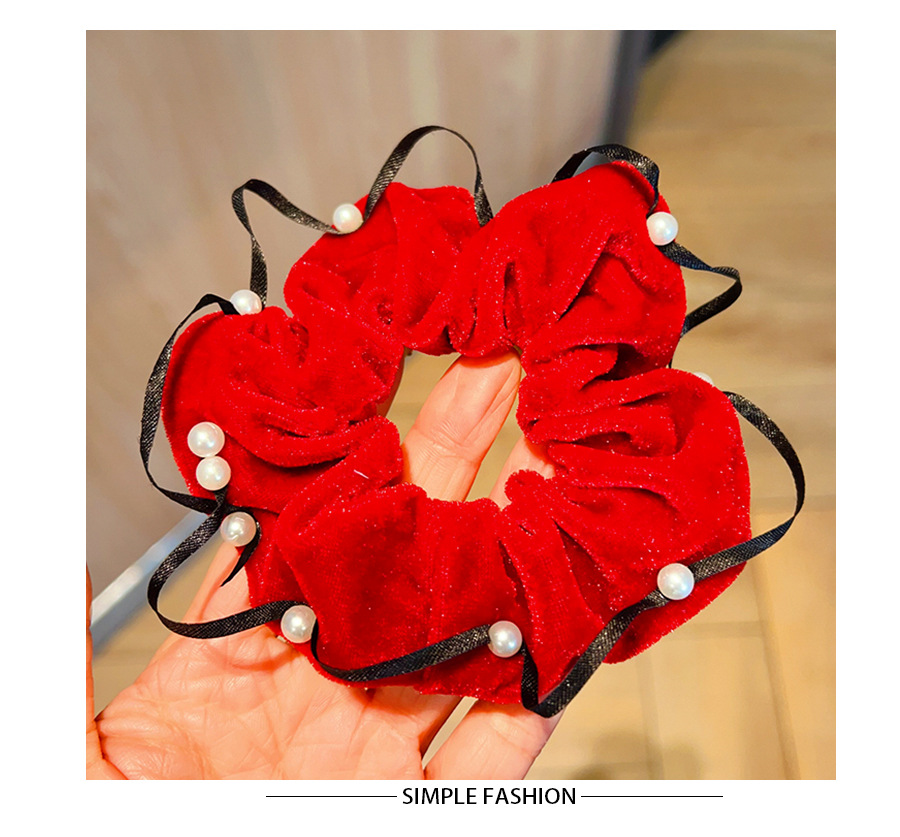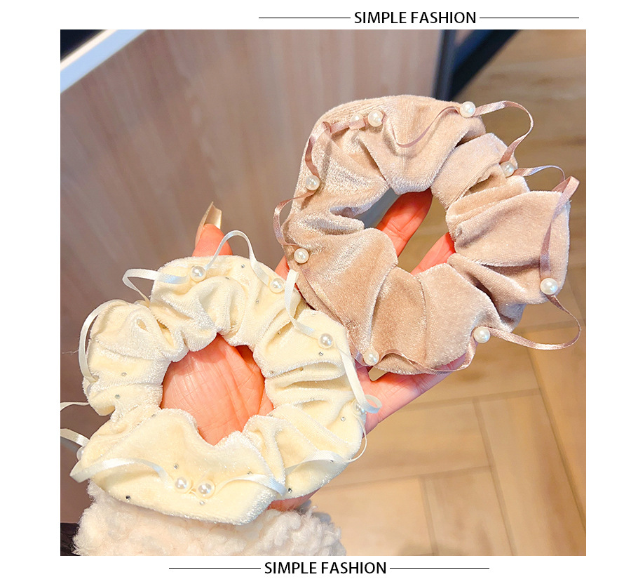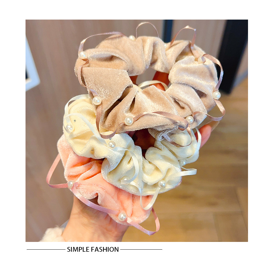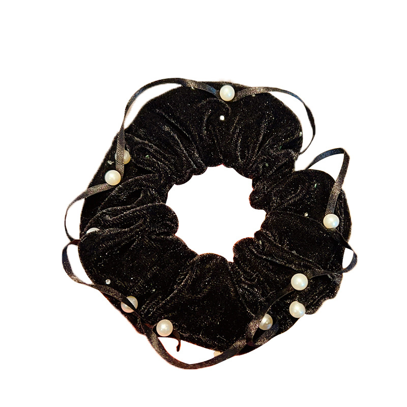 小香风新款丝绒布艺大肠发圈法式蝴蝶结珍珠发绳头绳高级感发饰