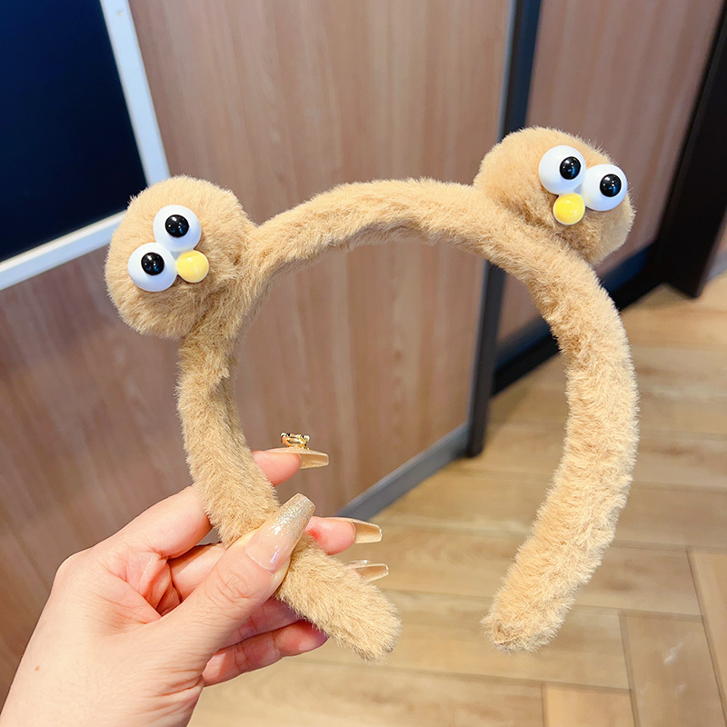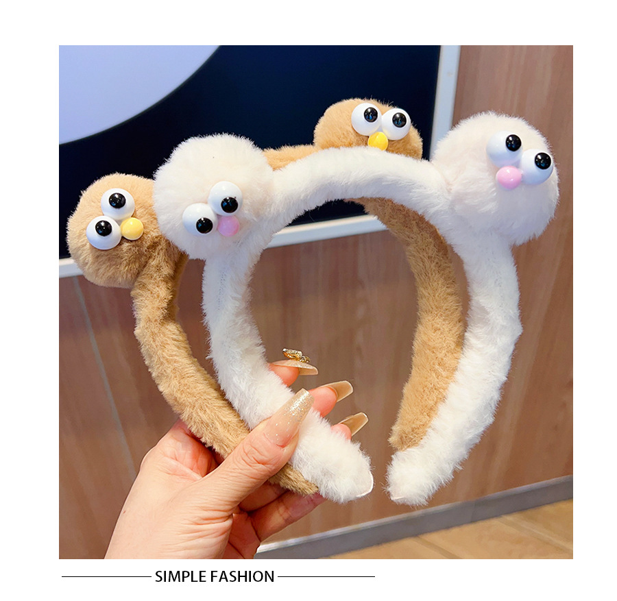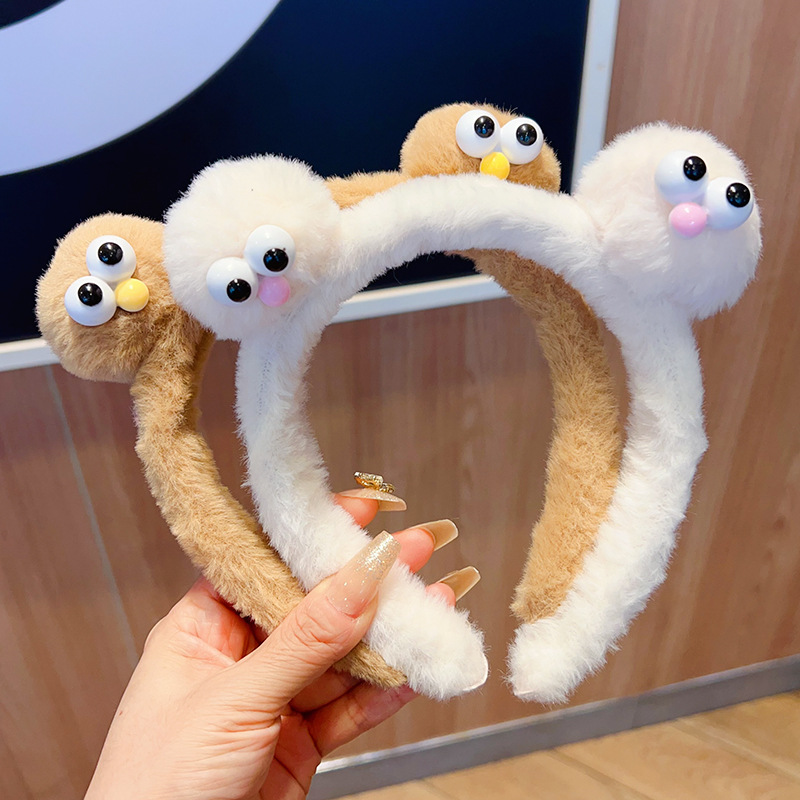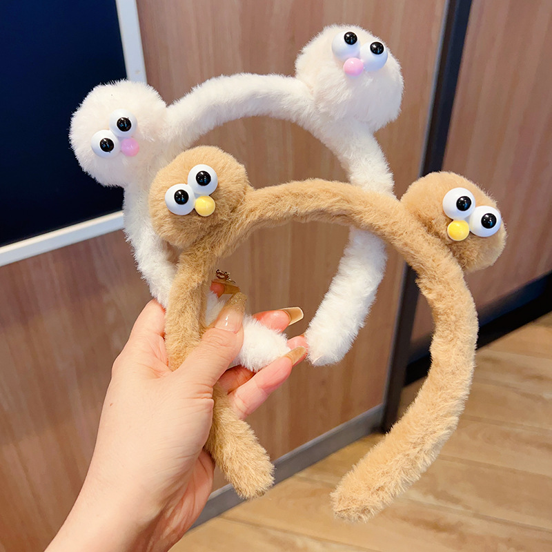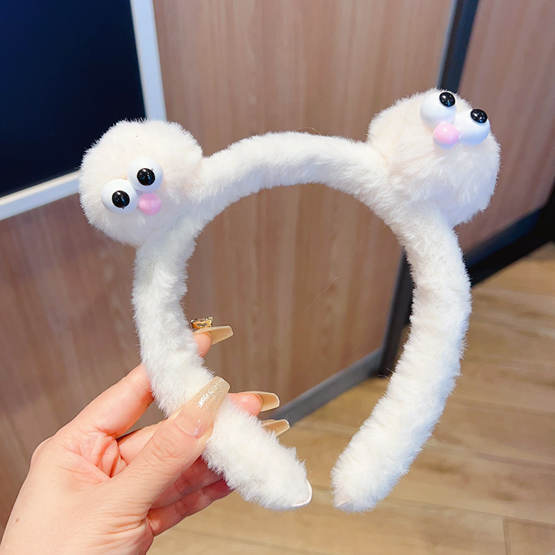 新款可爱大眼睛毛绒毛球发箍女洗脸压发防滑头箍儿童发箍发捆头饰