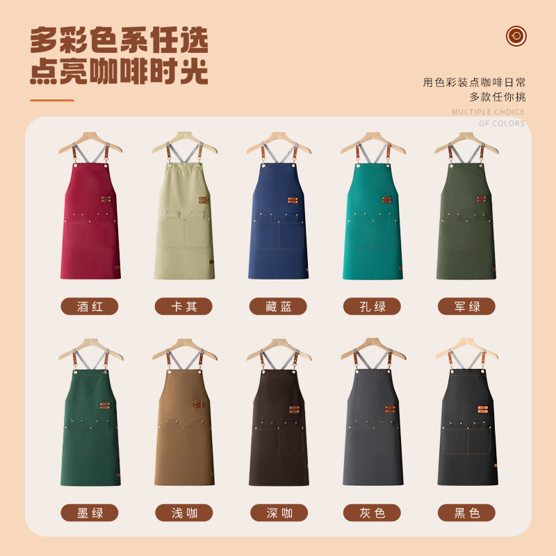 帆布围裙防水防油餐饮工作服耐脏一件起批发定制印字广告厨房跨境