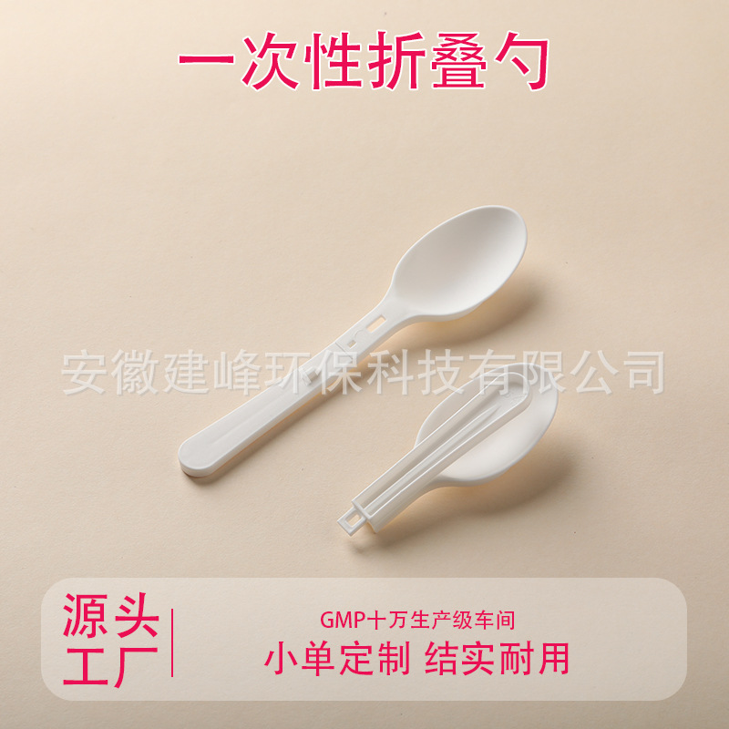 一次性折叠勺子独立包装加厚甜品打包商用透明白色折叠勺八宝粥勺