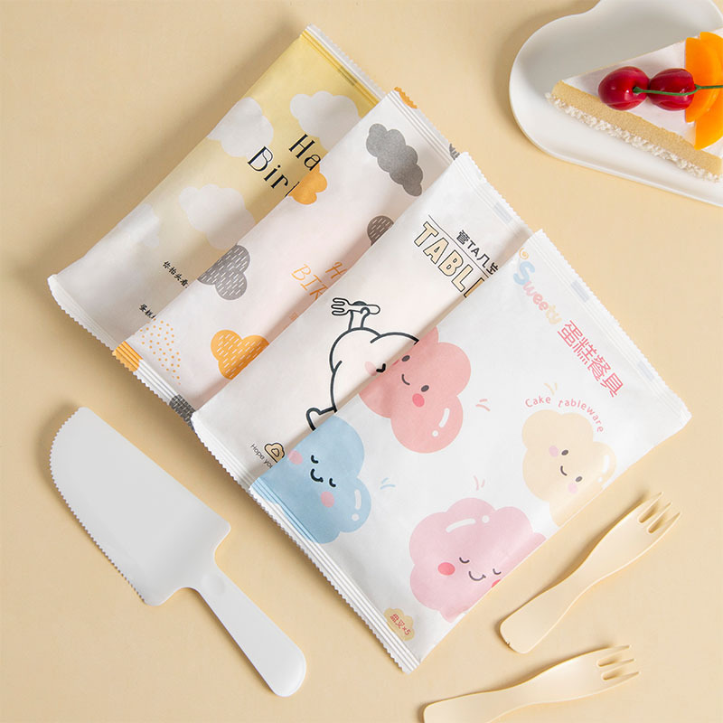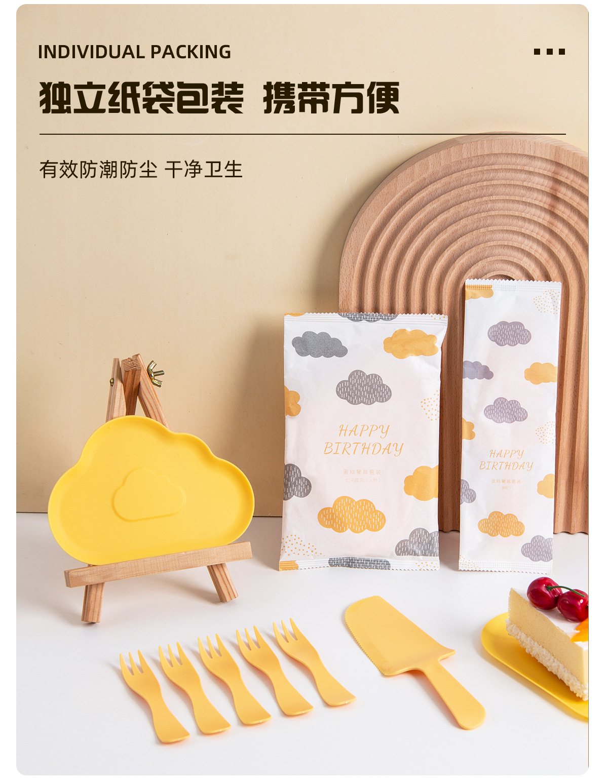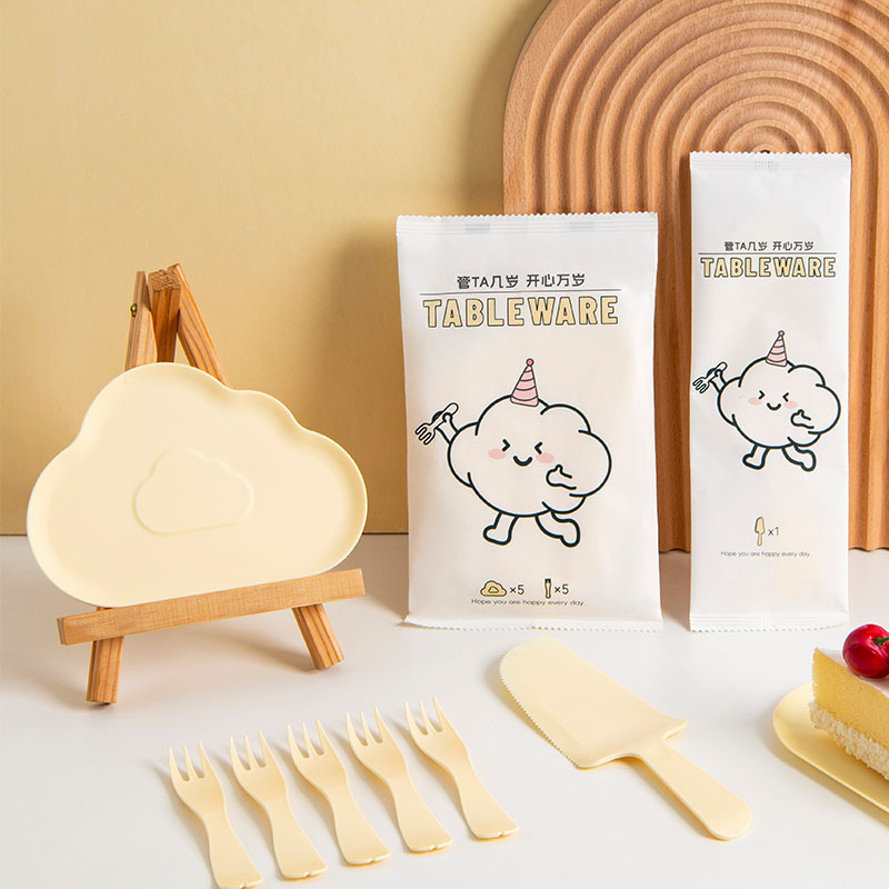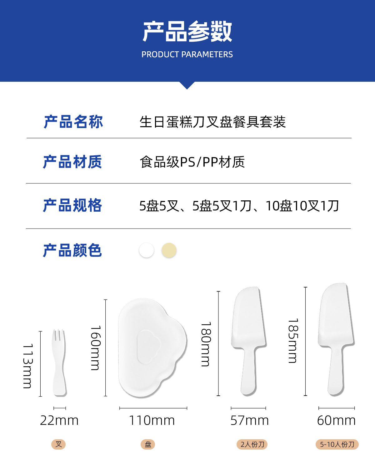 批发蛋糕刀叉生日派对一次性食品级塑料刀叉盘餐具套装可加印LOGO