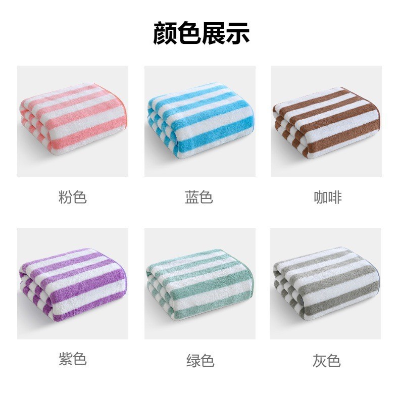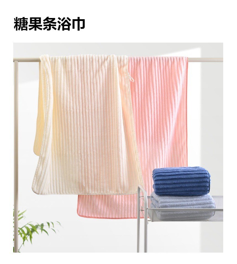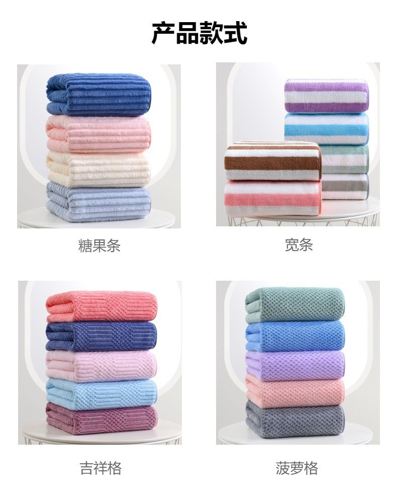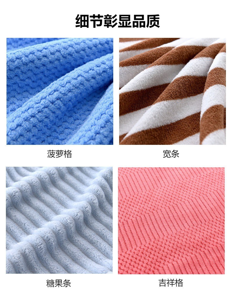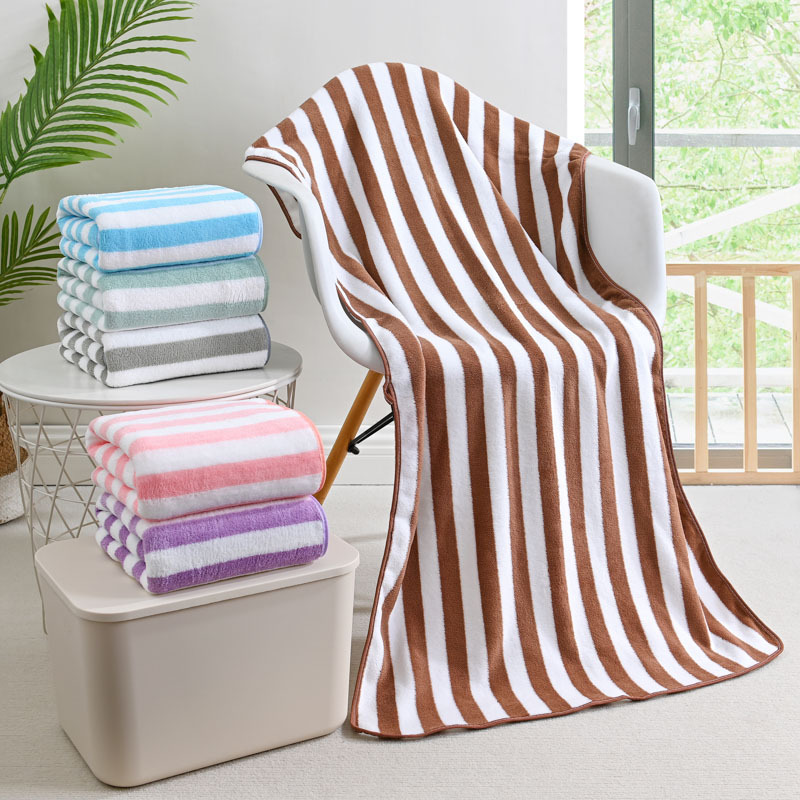 珊瑚绒宽条吉祥格菠萝格加大浴巾柔软吸水不掉毛沙滩巾速干洗澡巾