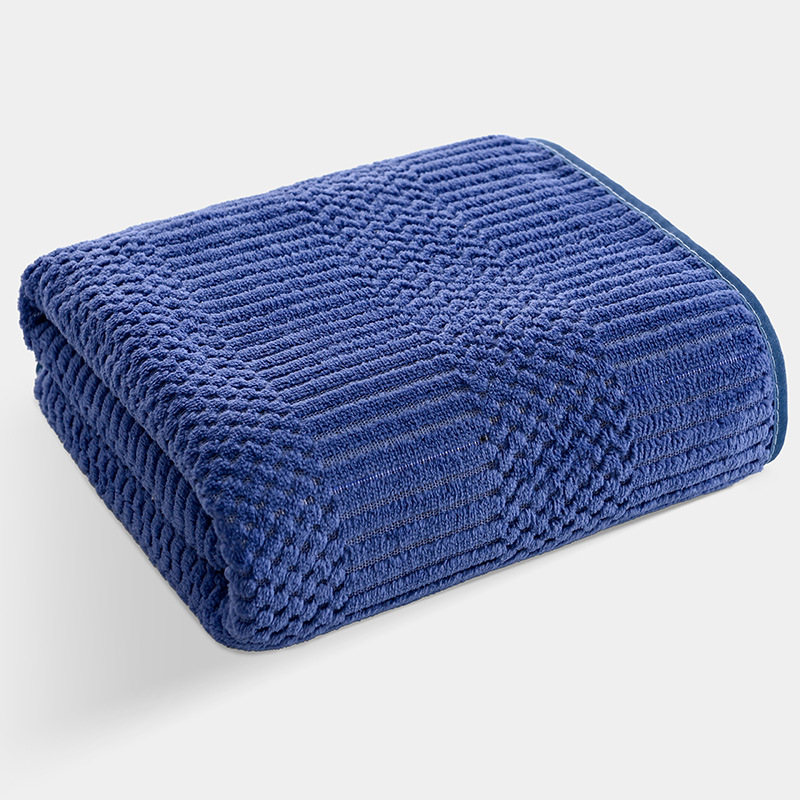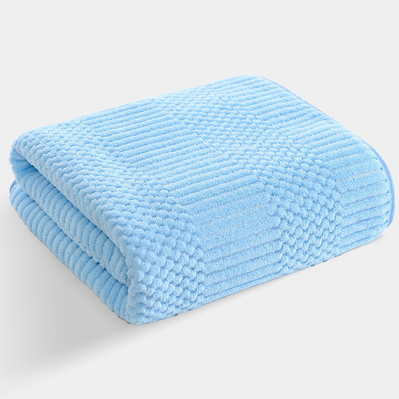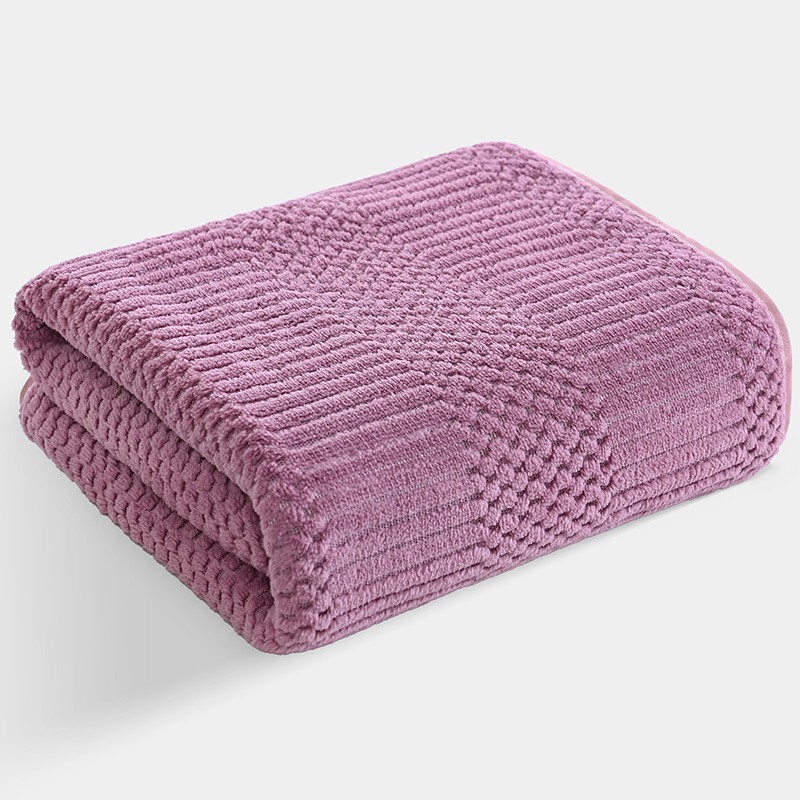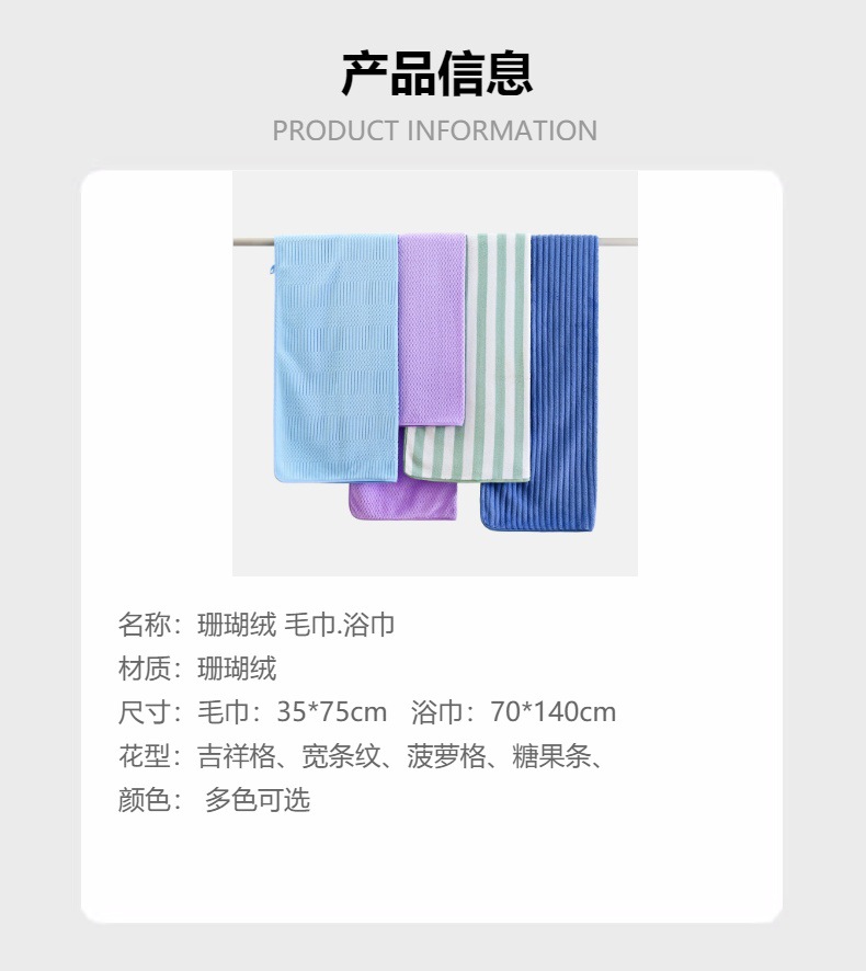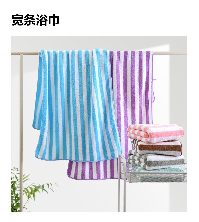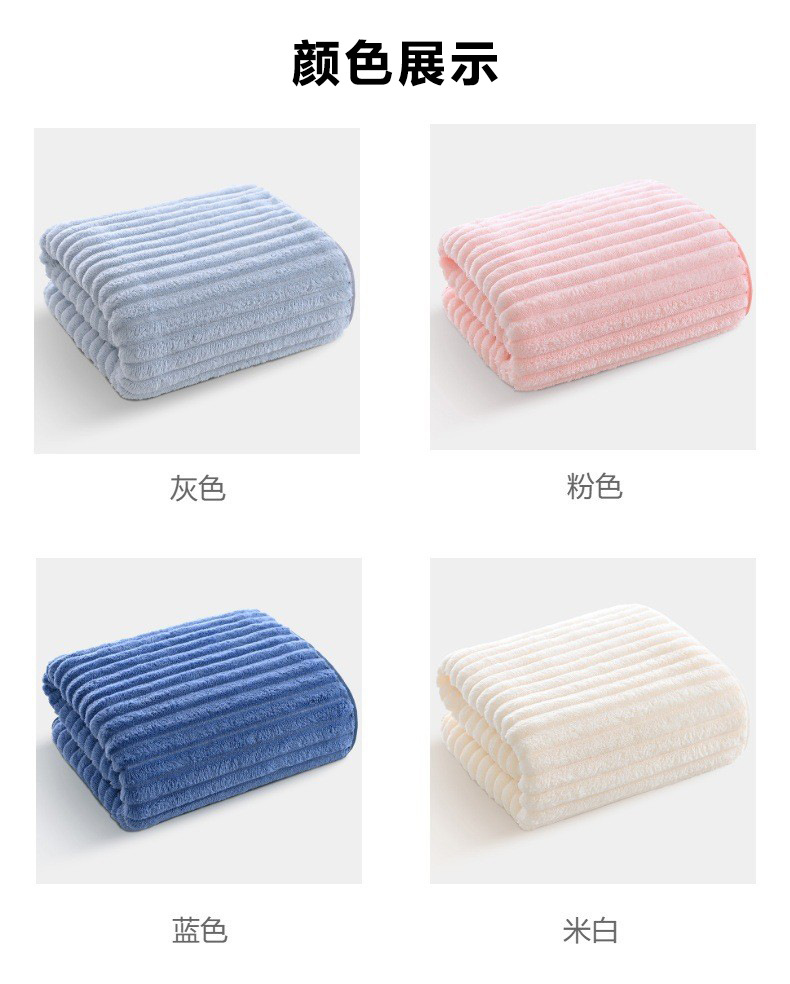 珊瑚绒宽条吉祥格菠萝格加大浴巾柔软吸水不掉毛沙滩巾速干洗澡巾