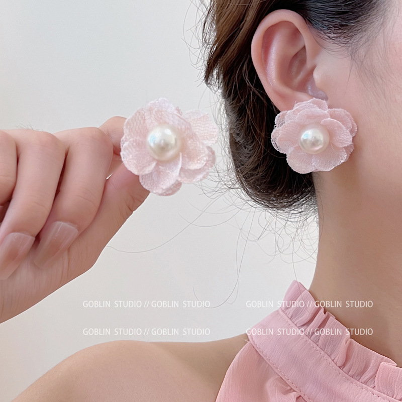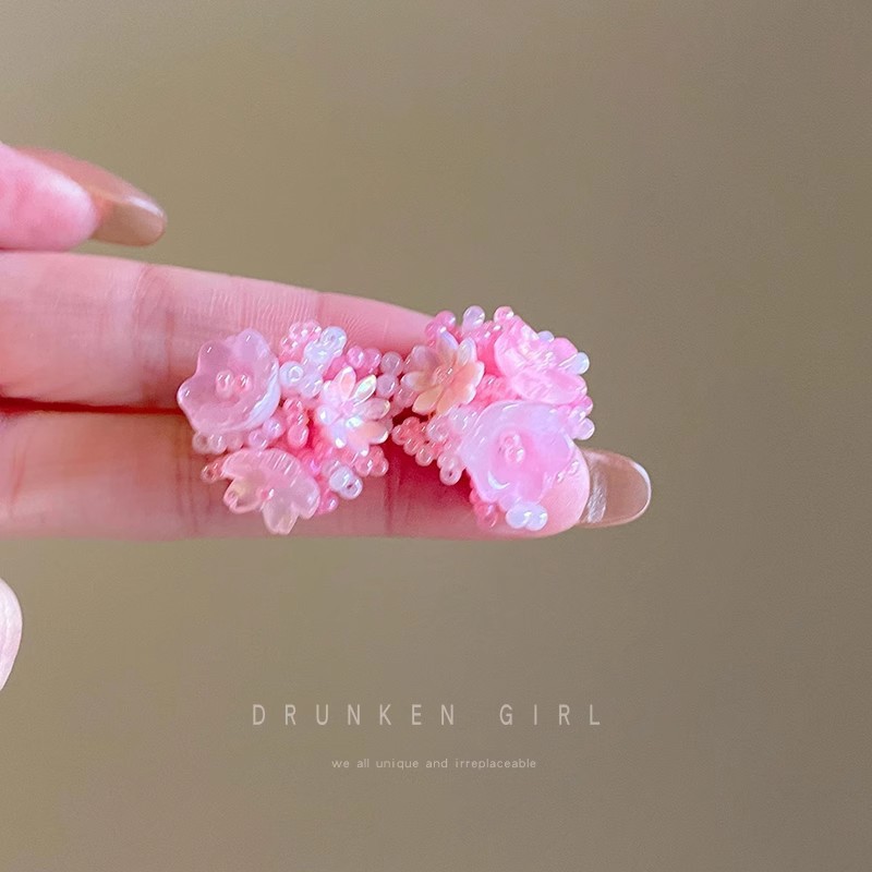 饰品小清新网红珍珠耳钉耳环度假风温柔超仙气质长款流苏花朵耳环