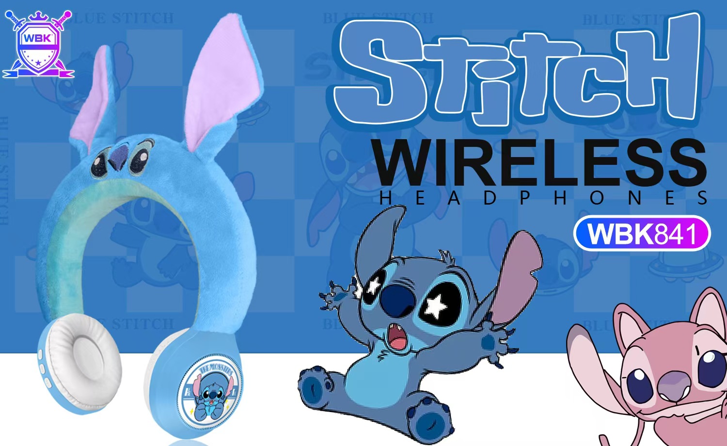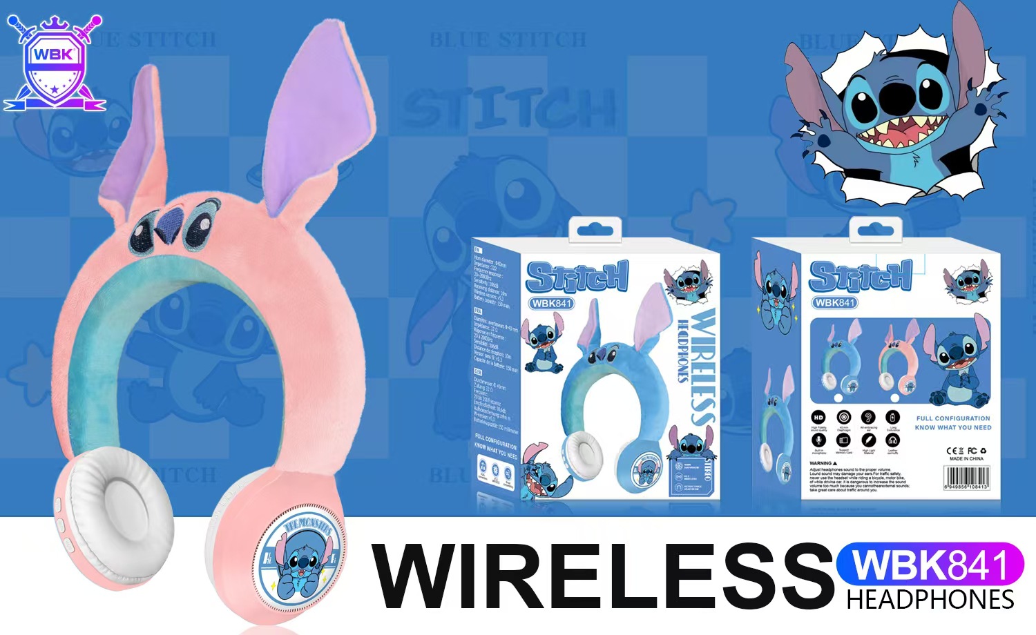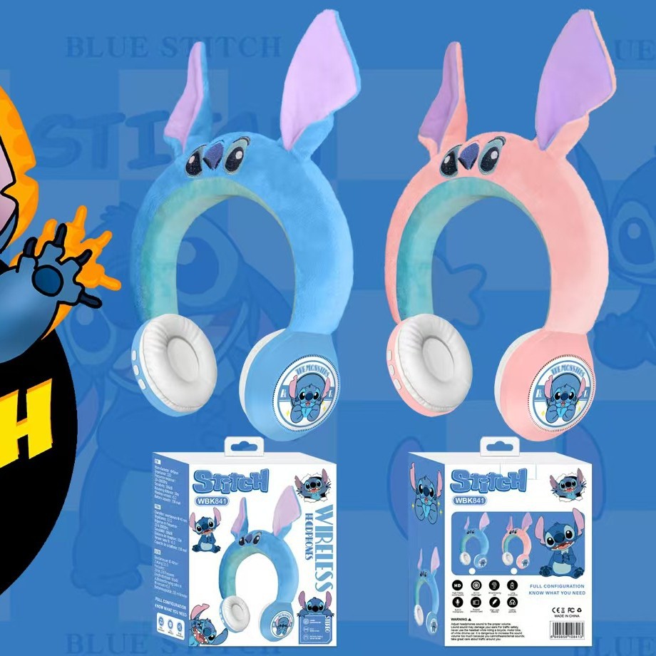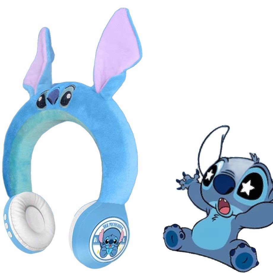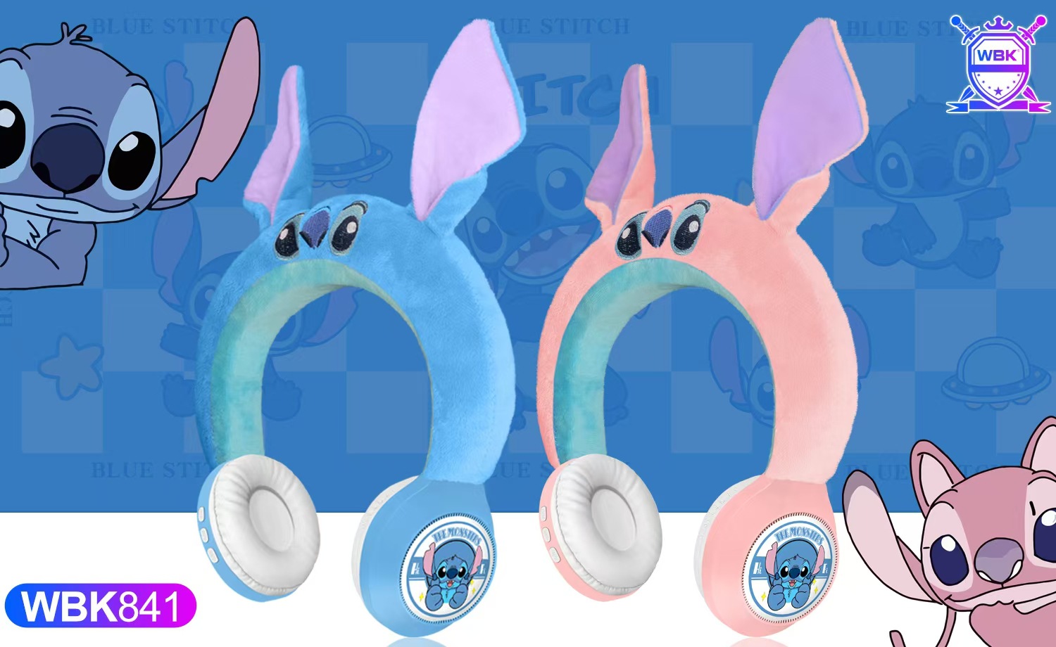 WBK841跨境新款创意卡通史迪仔毛绒头戴蓝牙耳机礼品无线儿童耳机