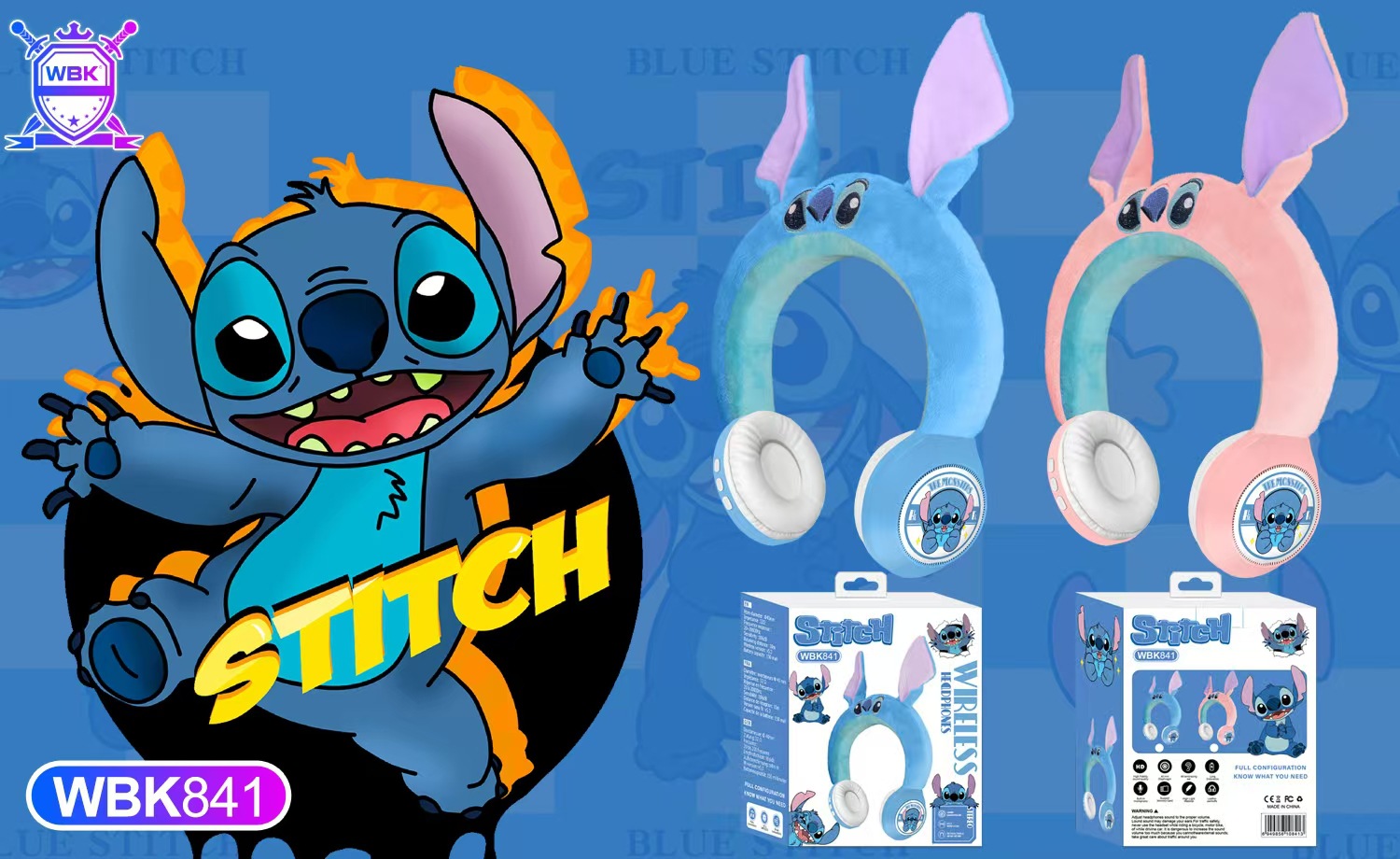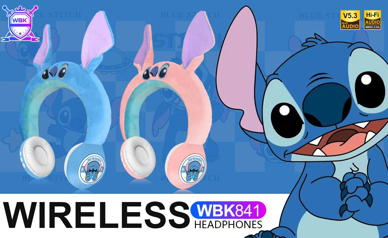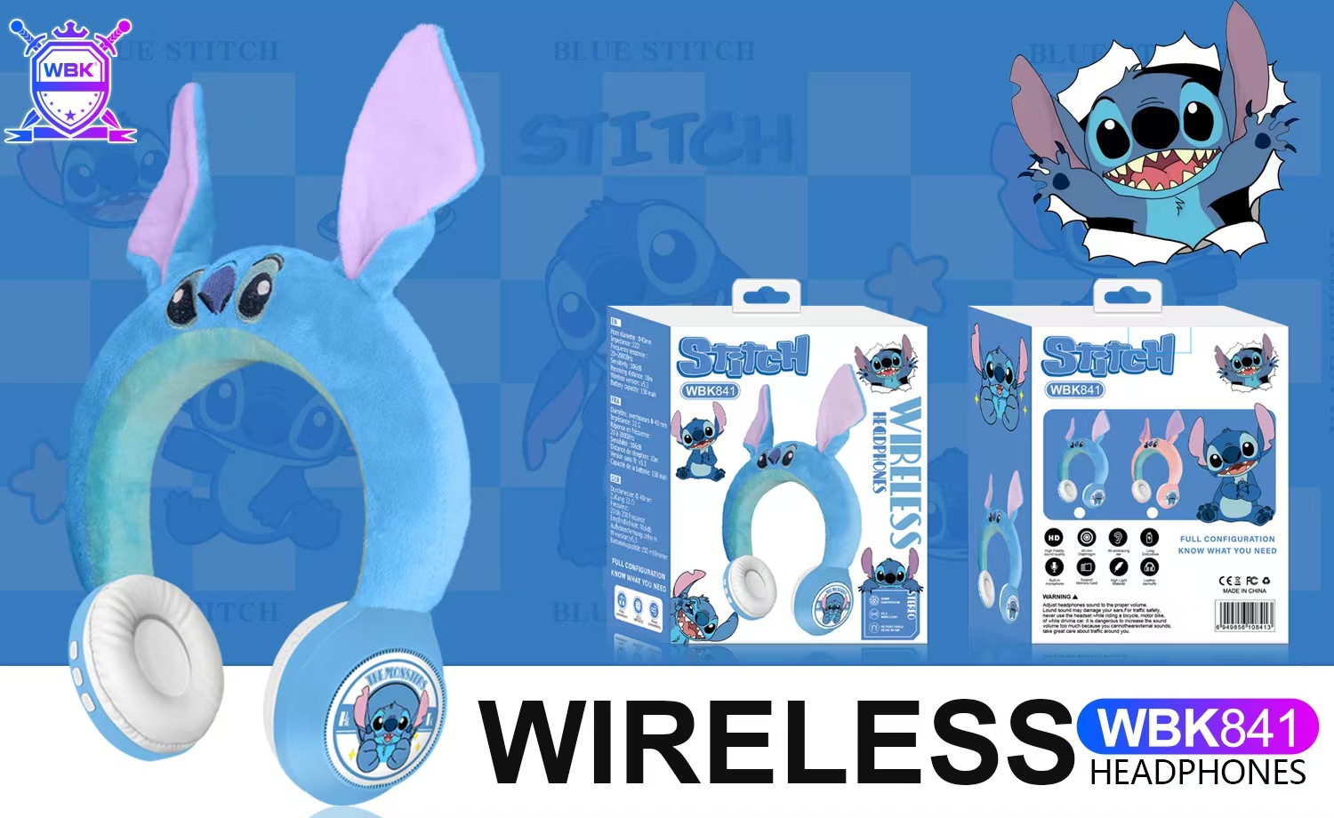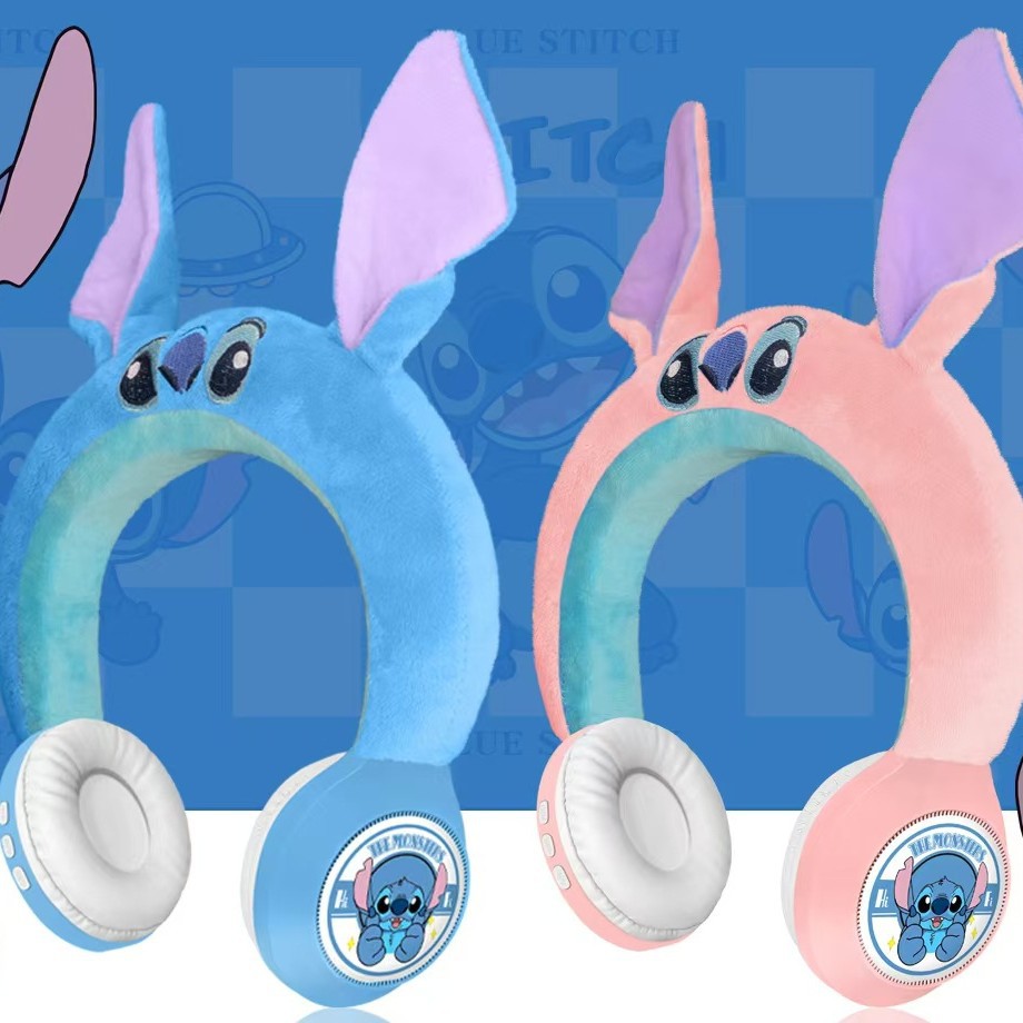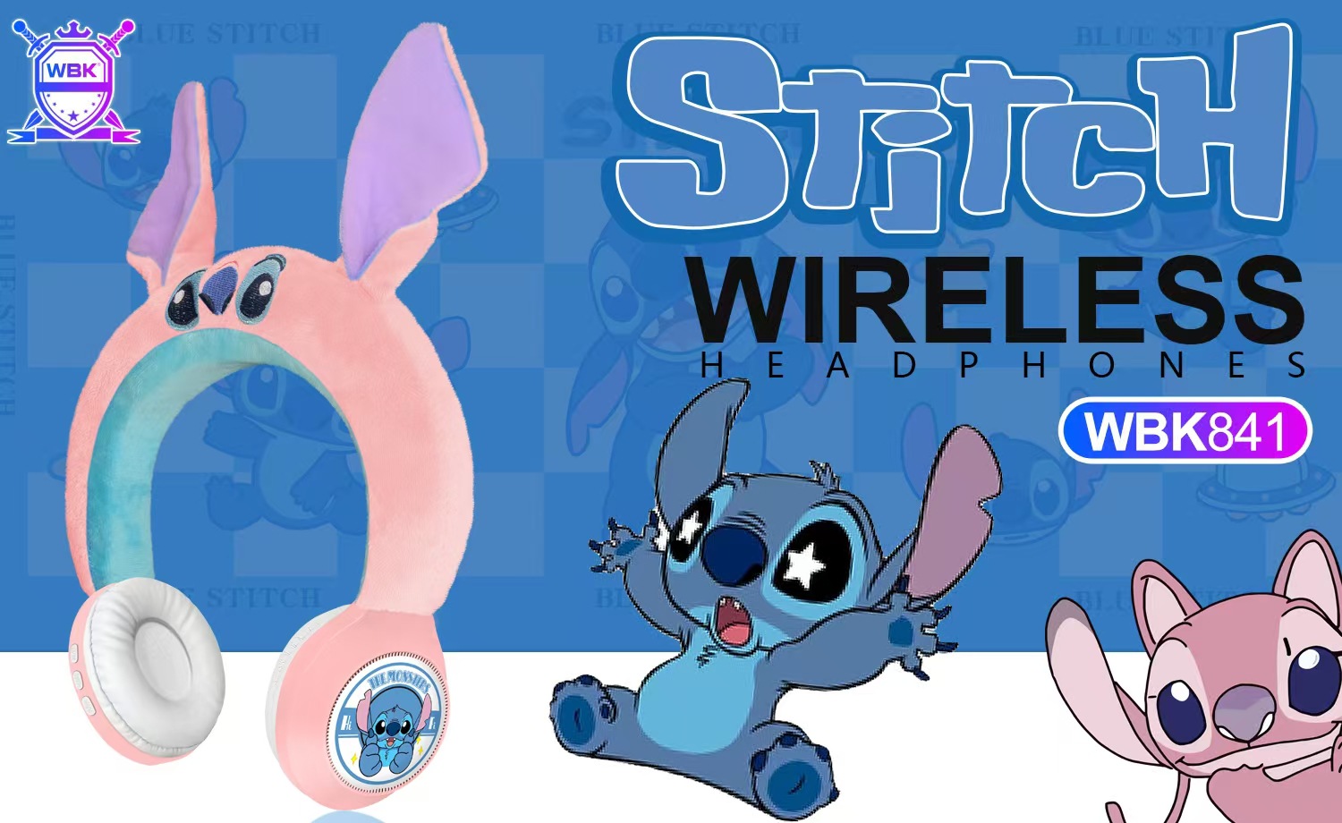 WBK841跨境新款创意卡通史迪仔毛绒头戴蓝牙耳机礼品无线儿童耳机