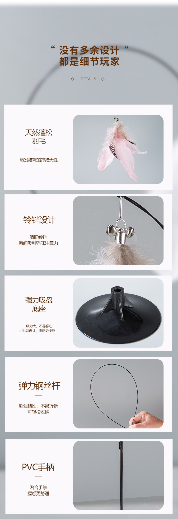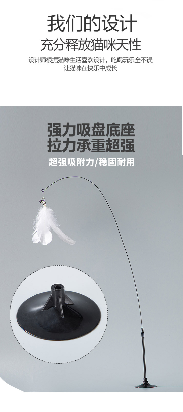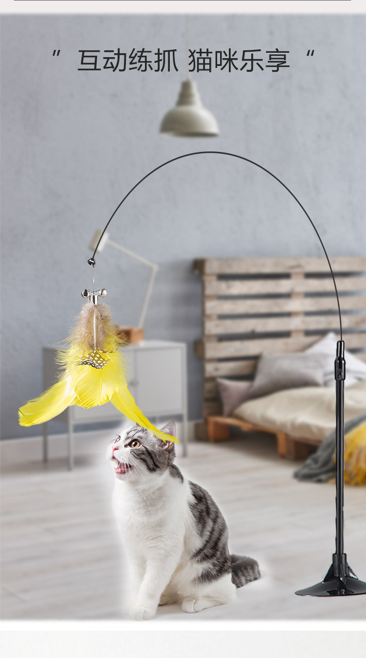吸盘逗猫棒羽毛幼猫自嗨杆解闷猫宠物玩具配替换头带铃铛猫咪用品
