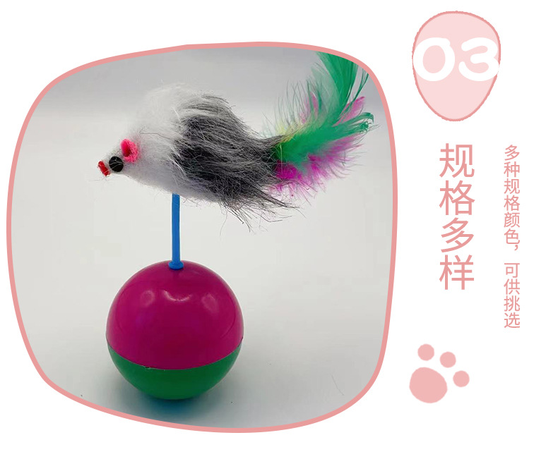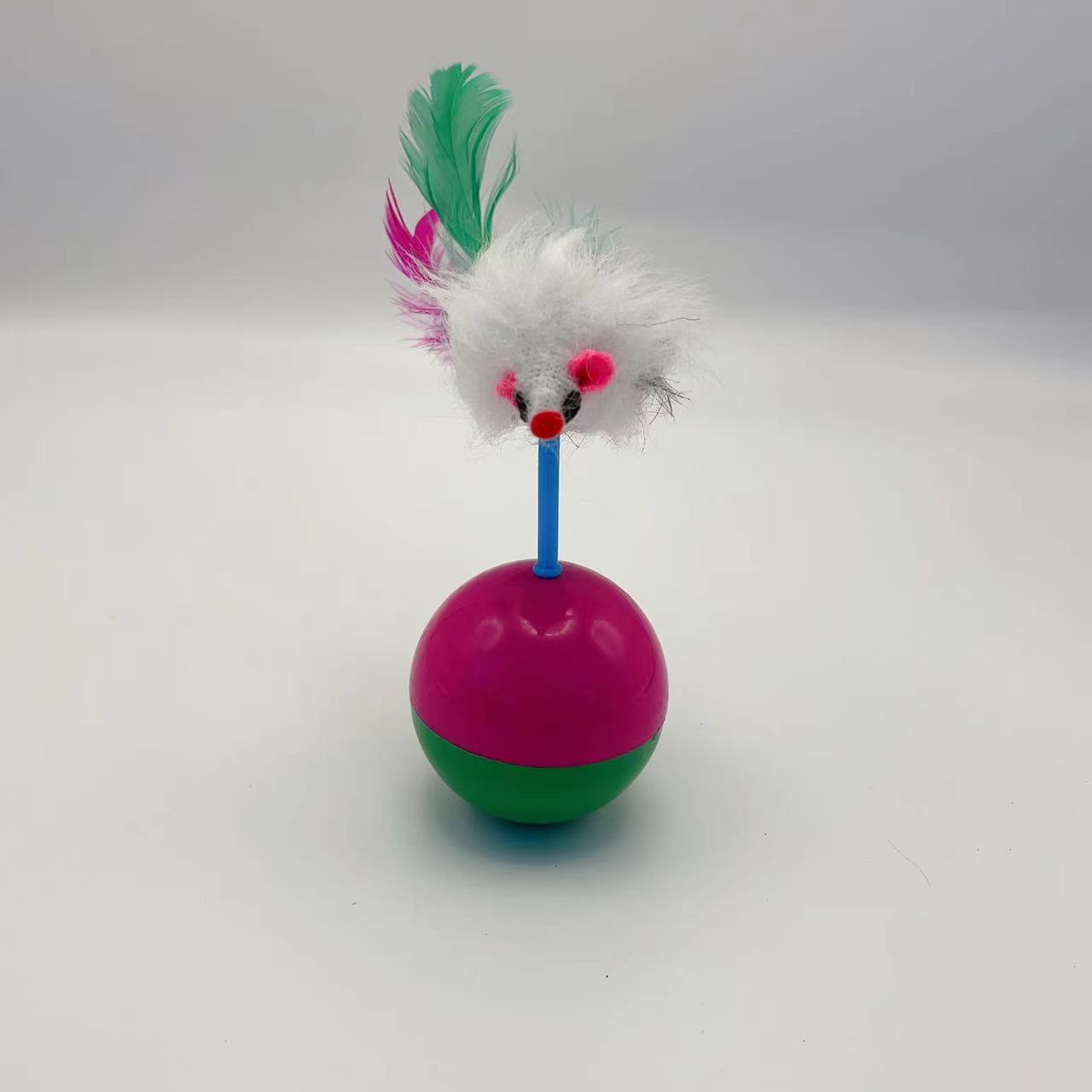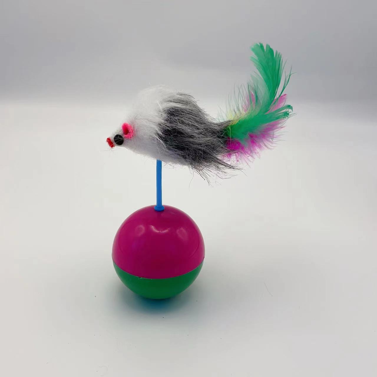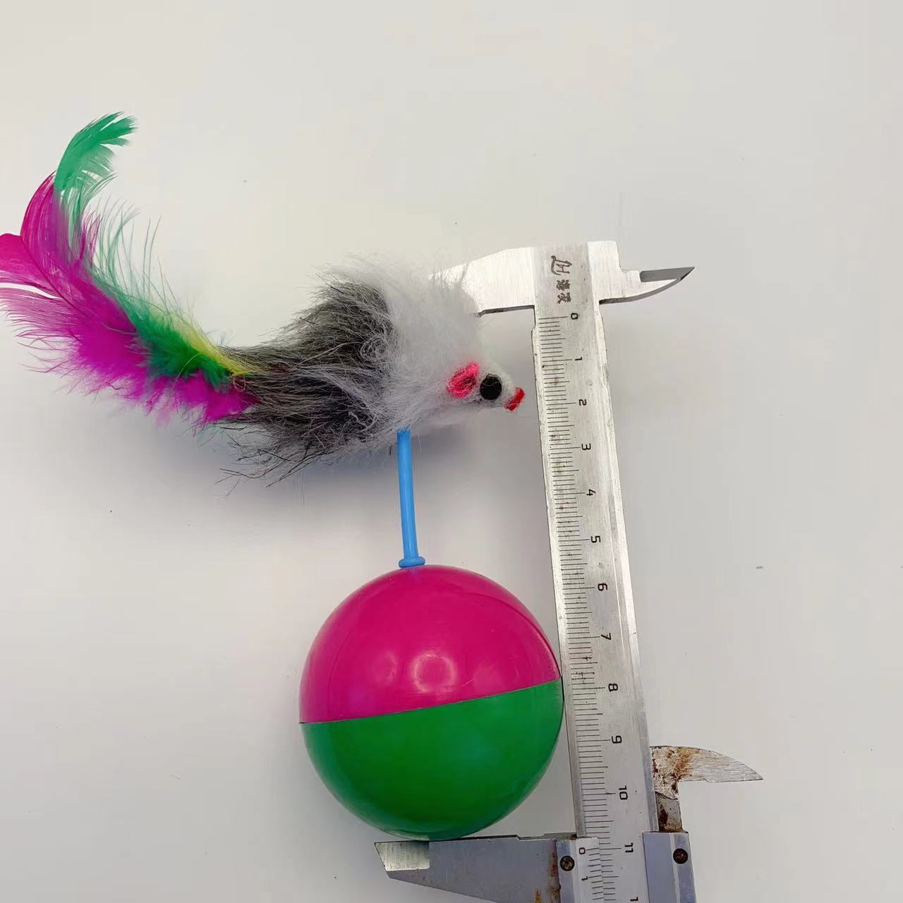 猫猫毛绒玩具工厂批发不倒翁七彩羽毛小老鼠猫咪玩耍宠物猫玩具