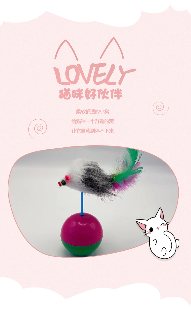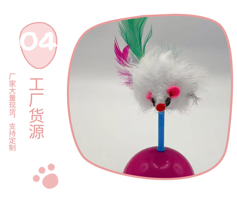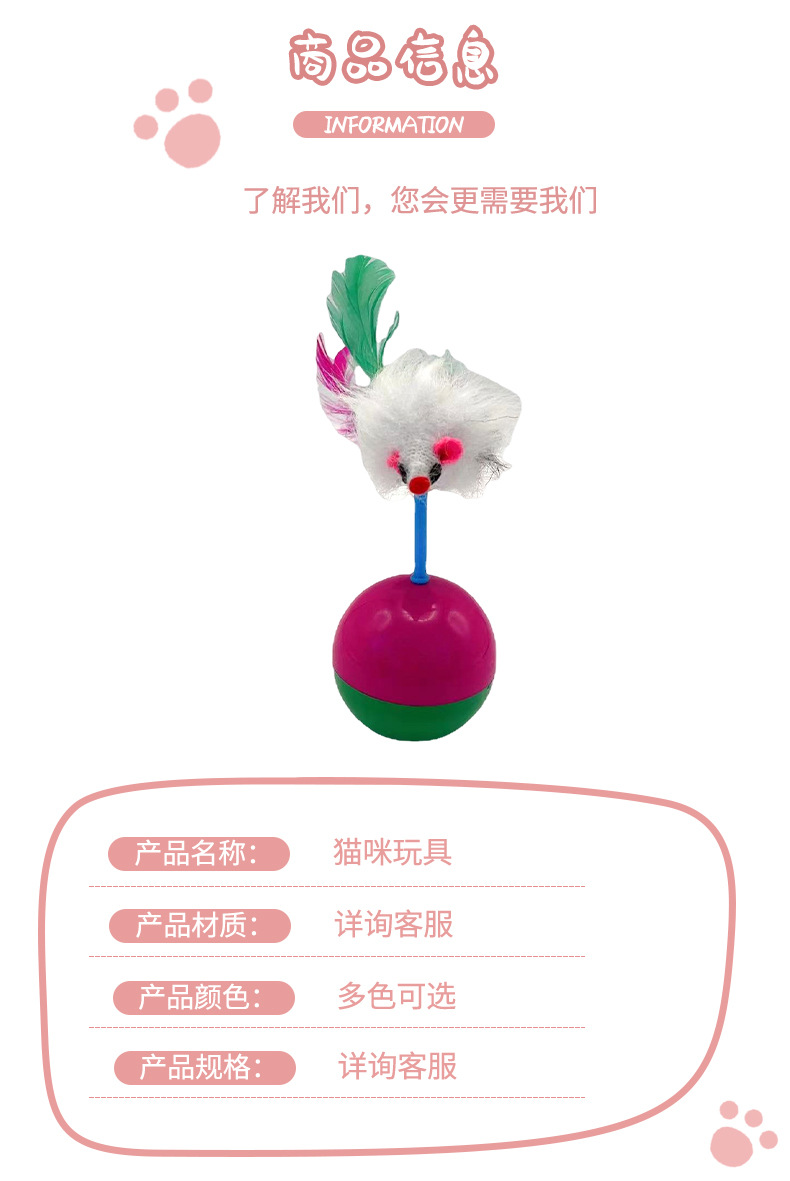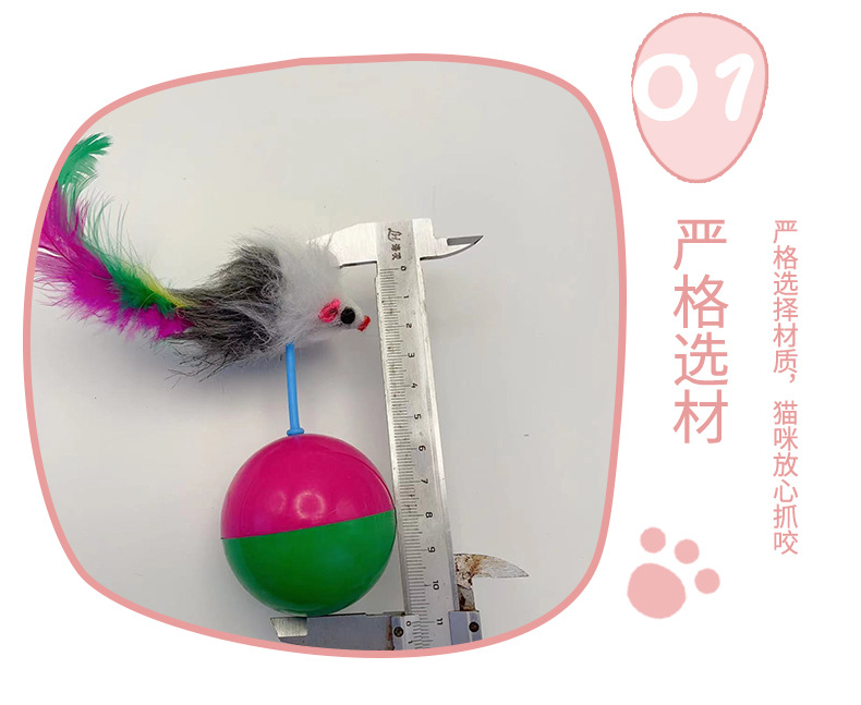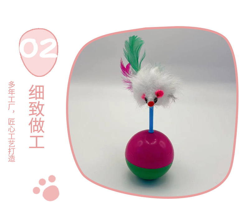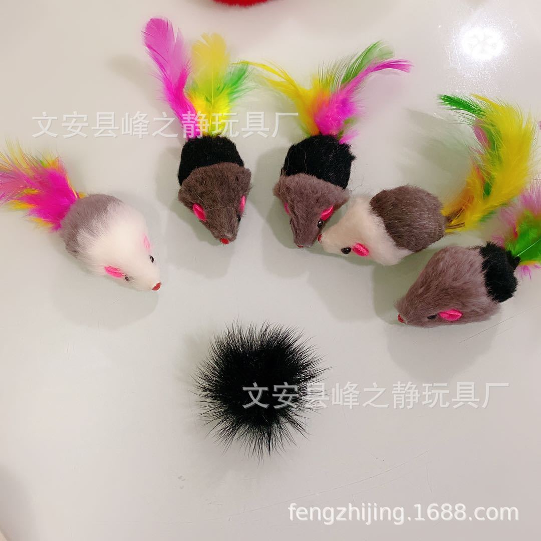 猫猫毛绒玩具工厂批发不倒翁七彩羽毛小老鼠猫咪玩耍宠物猫玩具