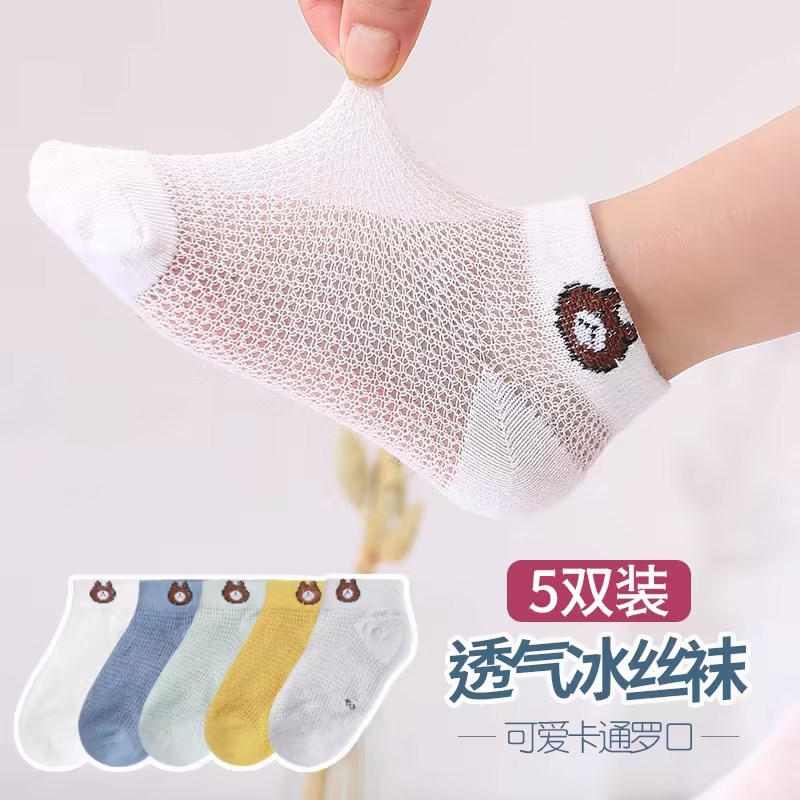 儿童袜子夏季薄款卡通中筒袜批发女童短袜透气网眼袜男童夏薄童袜