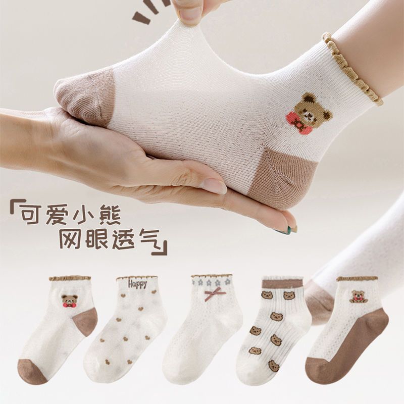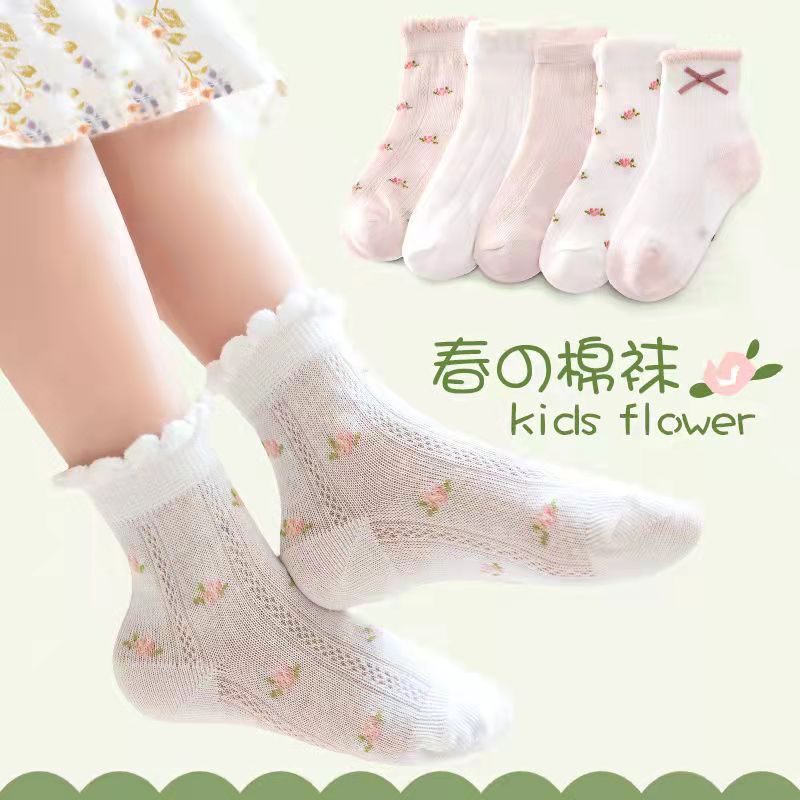 夏季薄款女童袜子可爱棉袜舒适透气中筒袜春款儿童网眼袜工厂批发