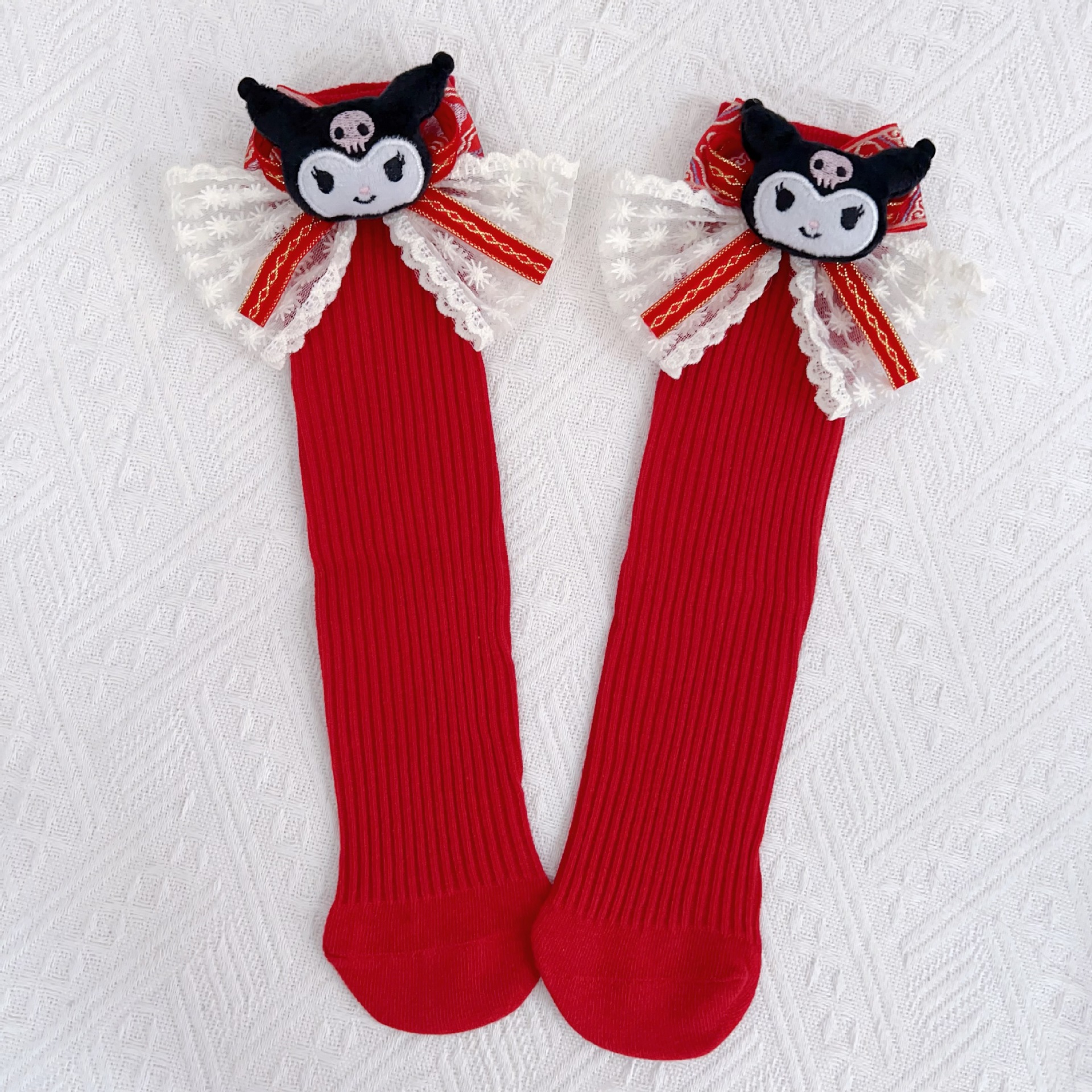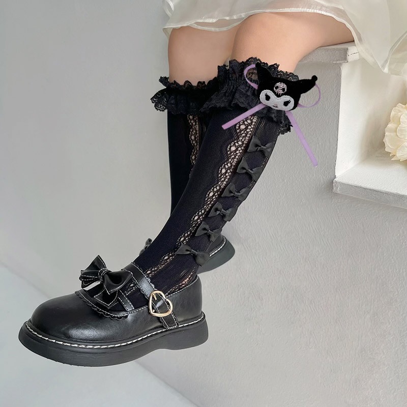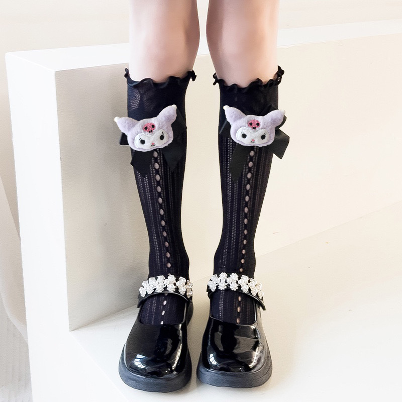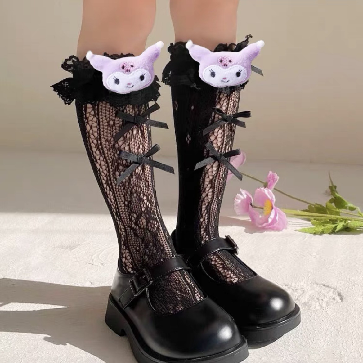 女童公仔lolita洛丽塔花边袜儿童中筒袜蕾丝蝴蝶结袜子