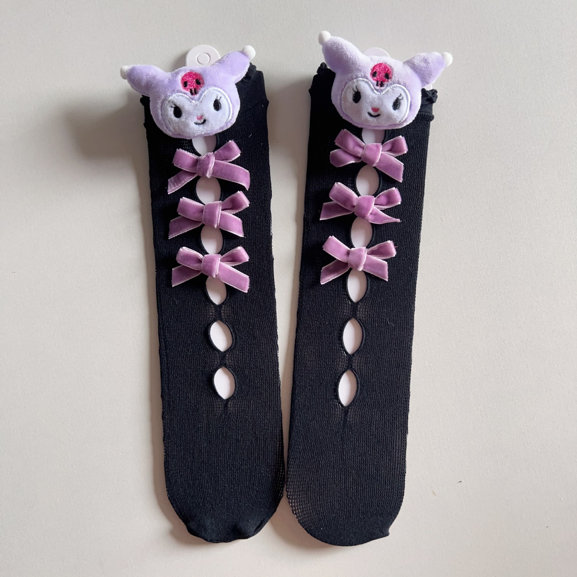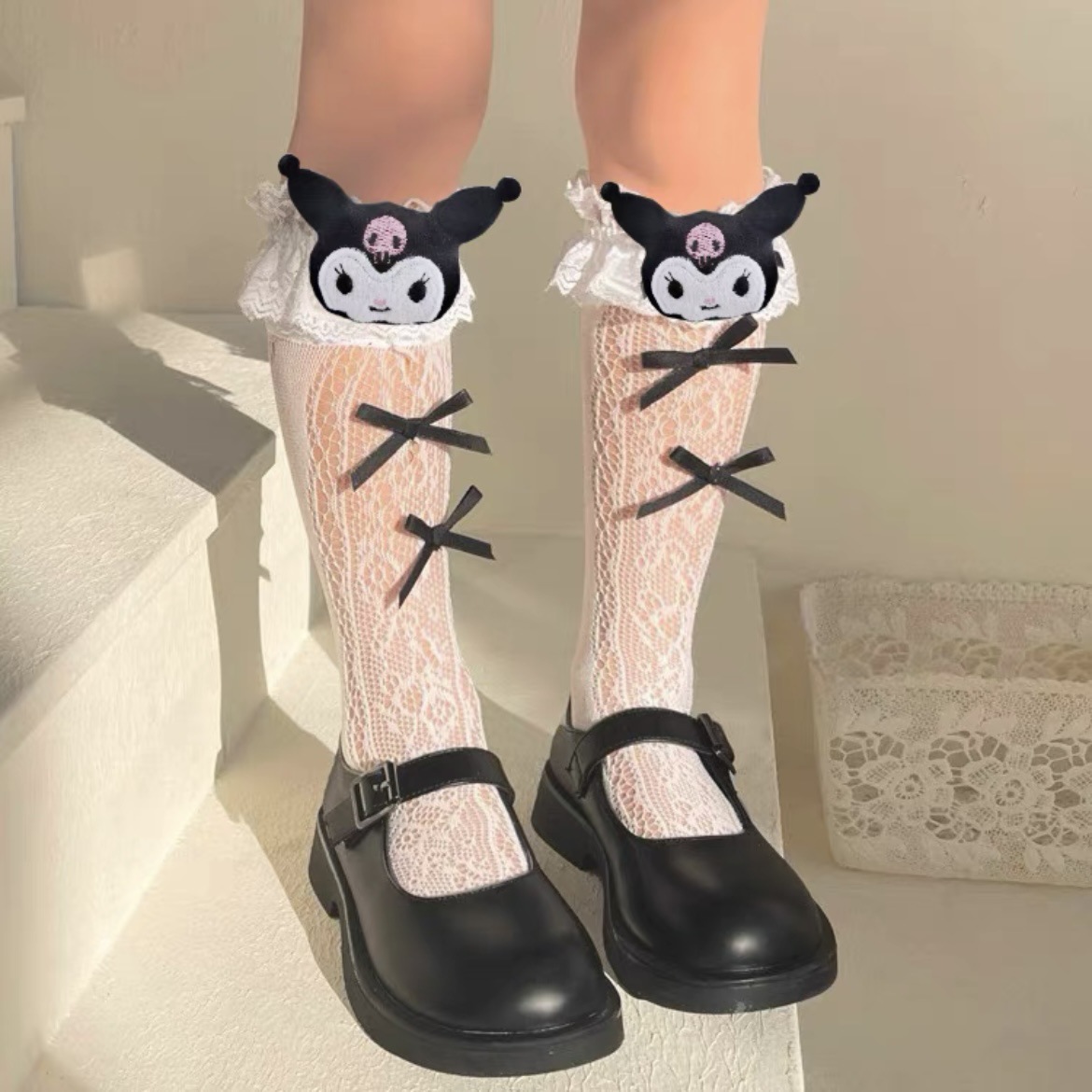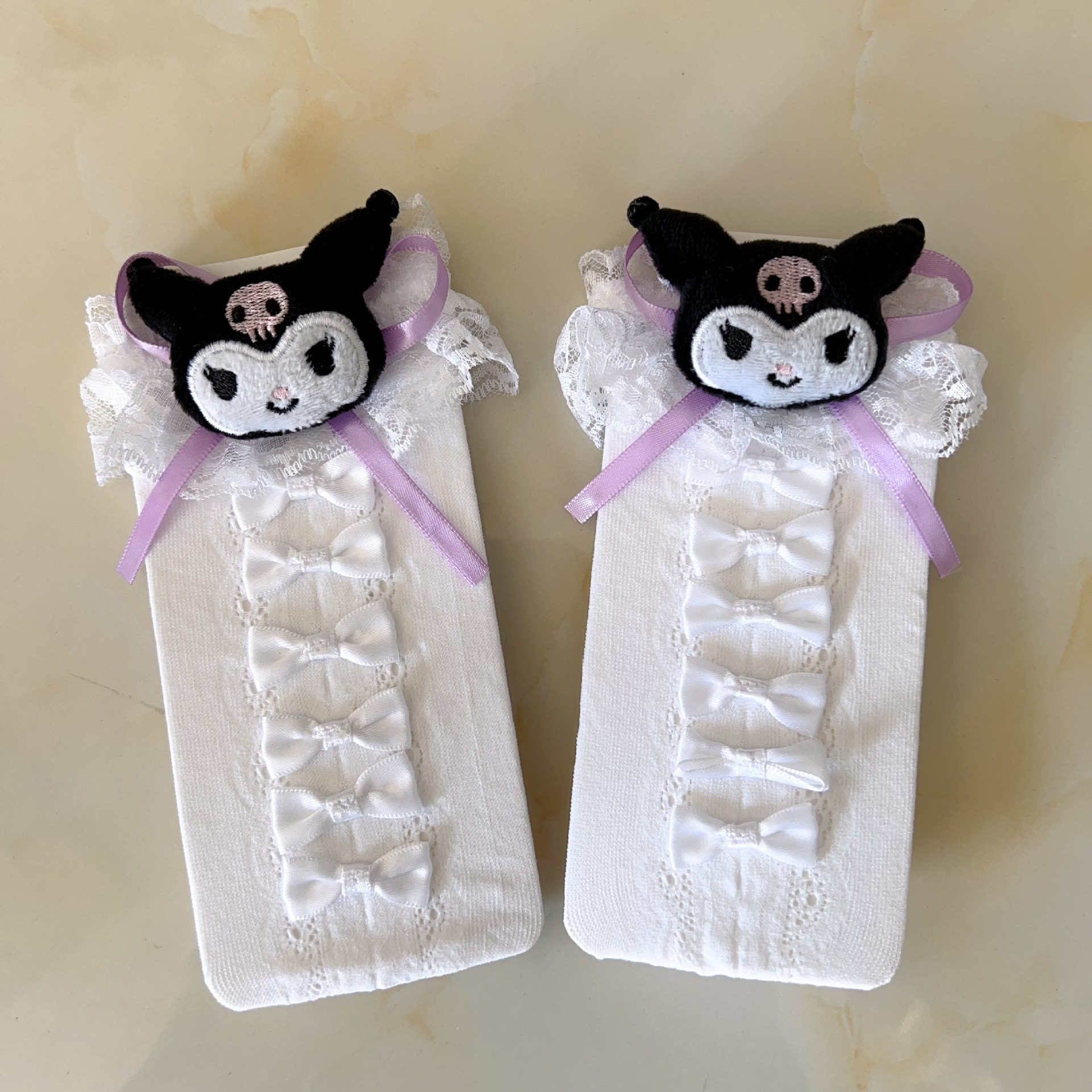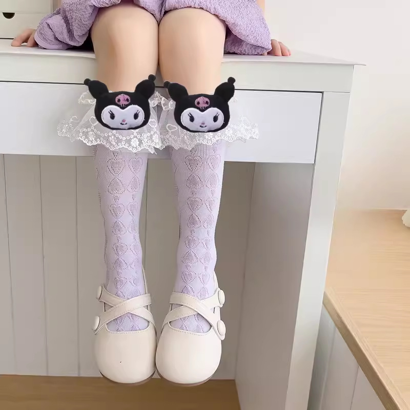 女童公仔lolita洛丽塔花边袜儿童中筒袜蕾丝蝴蝶结袜子