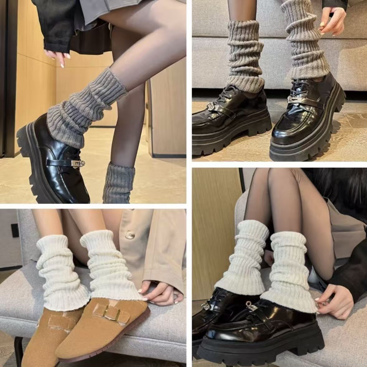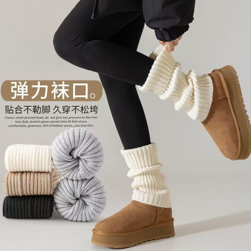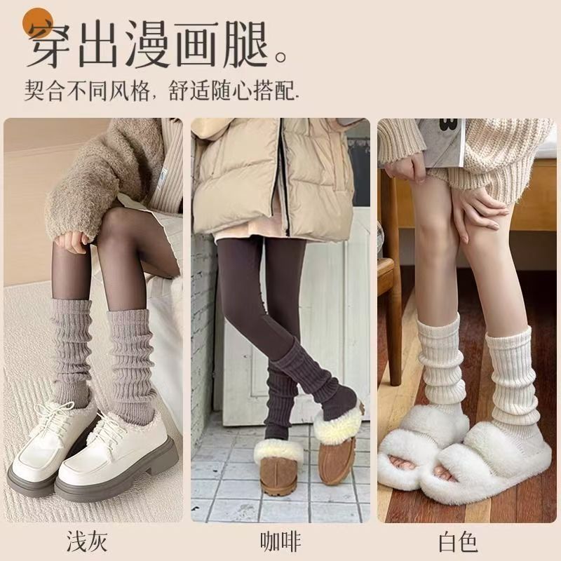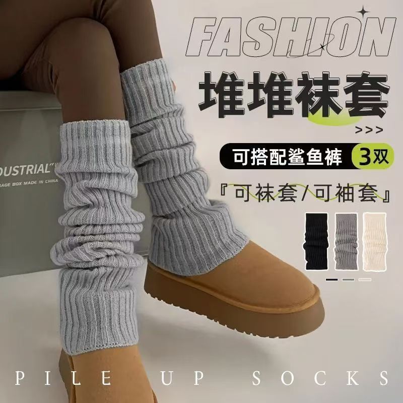 白灰色袜套女秋冬针织堆堆袜配雪地靴辣妹百搭袜套腿套保暖袜子女
