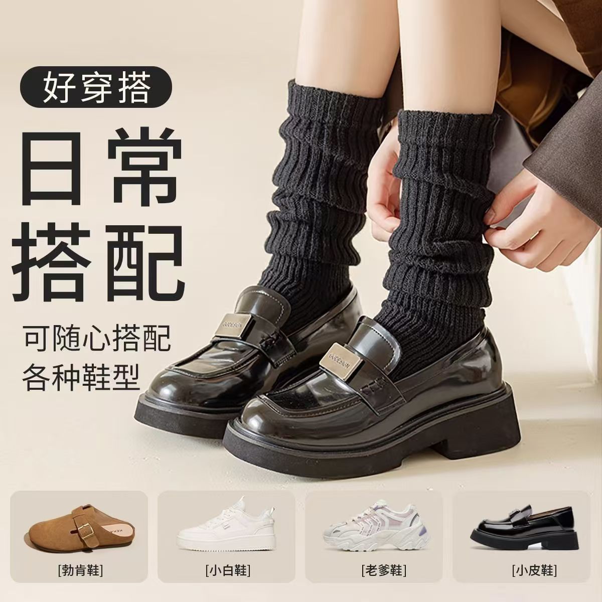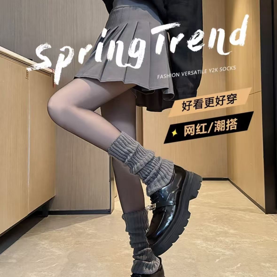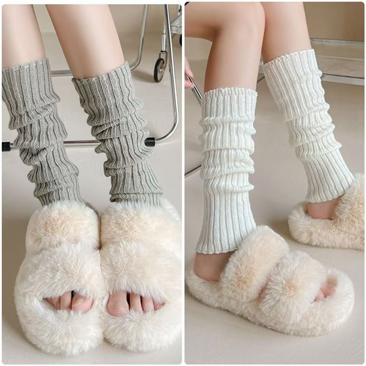 白灰色袜套女秋冬针织堆堆袜配雪地靴辣妹百搭袜套腿套保暖袜子女