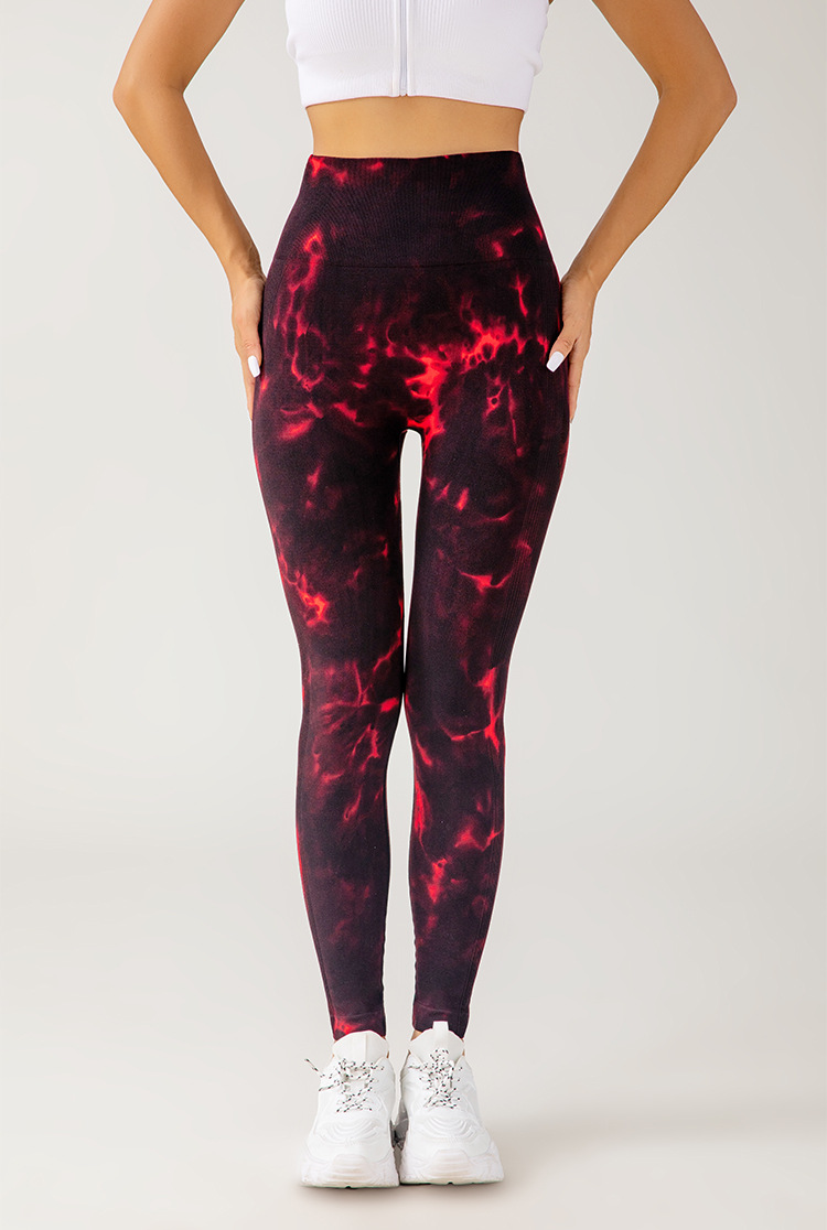 跨境新款蜜桃臀高腰运动健身裤扎染手绘紧身瑜伽裤跑步骑行长裤女