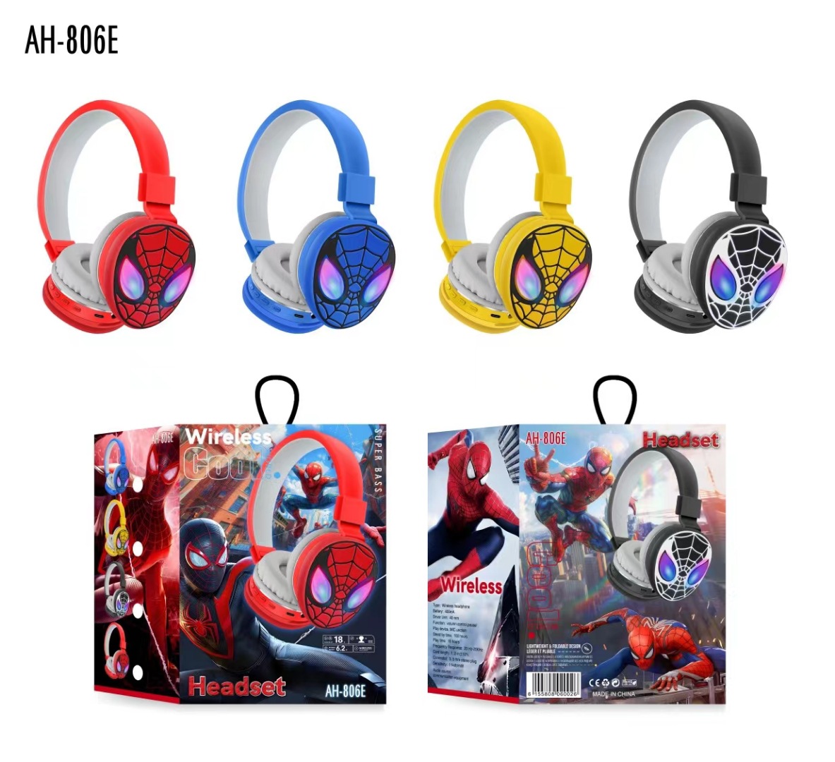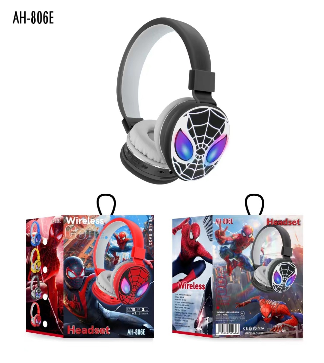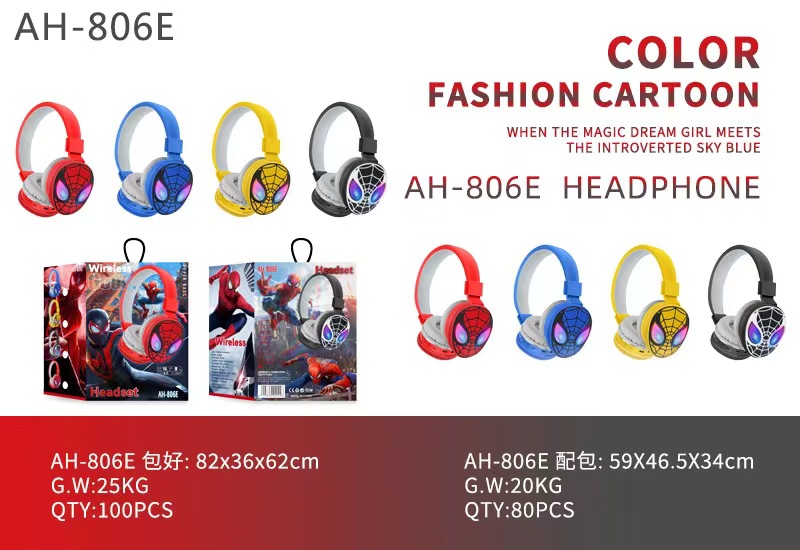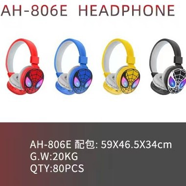 跨境AH-806E蜘蛛侠头戴式私模简约可爱卡通蓝牙立体声耳机电商