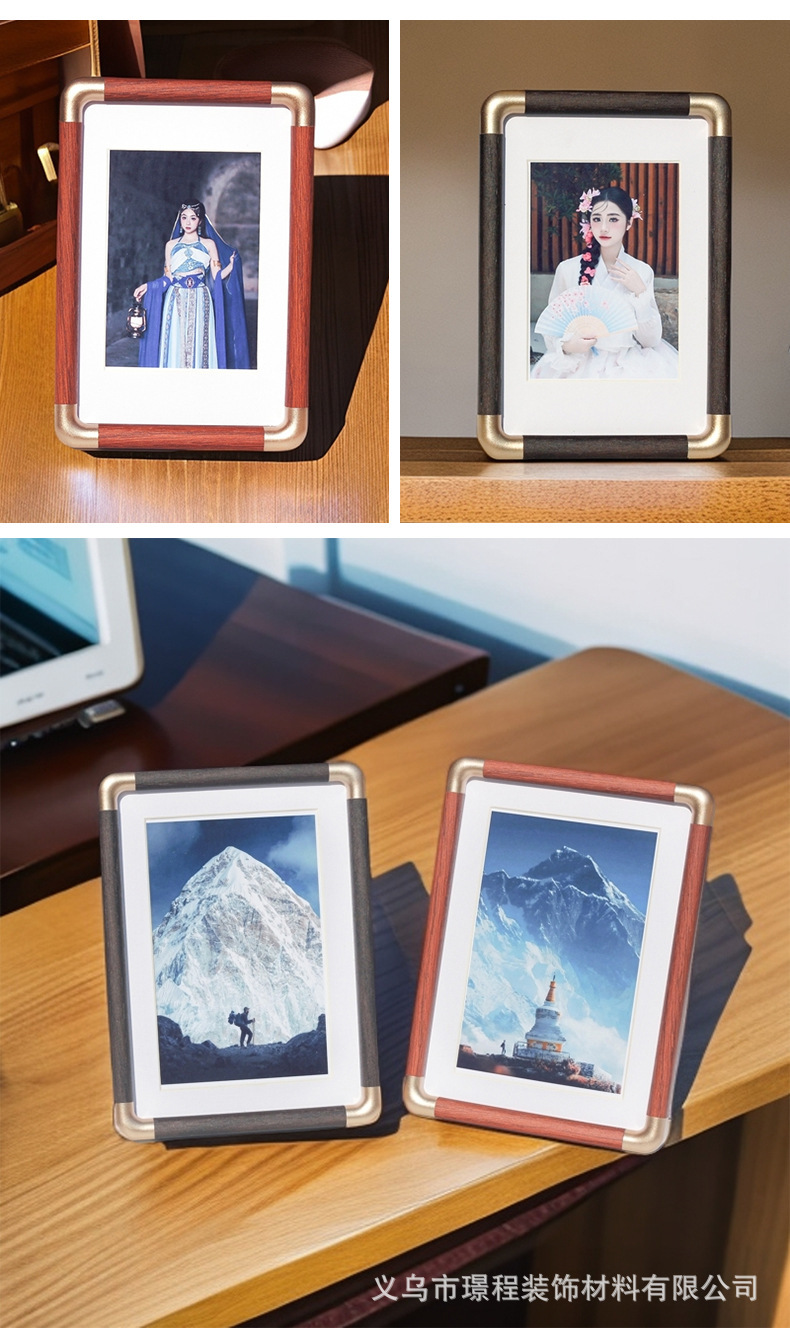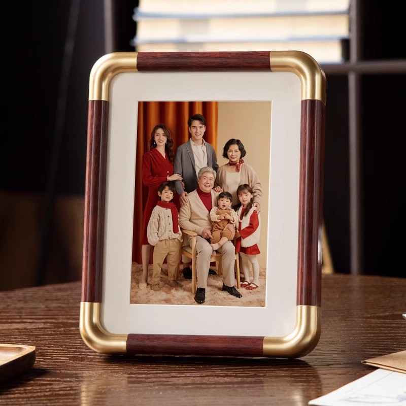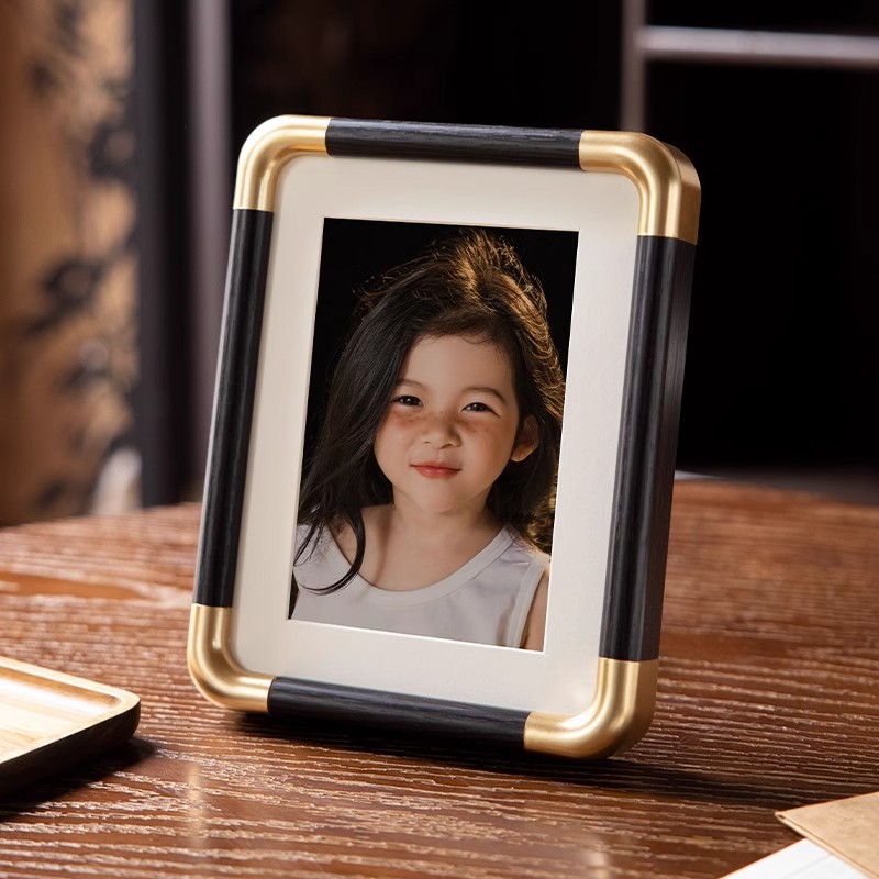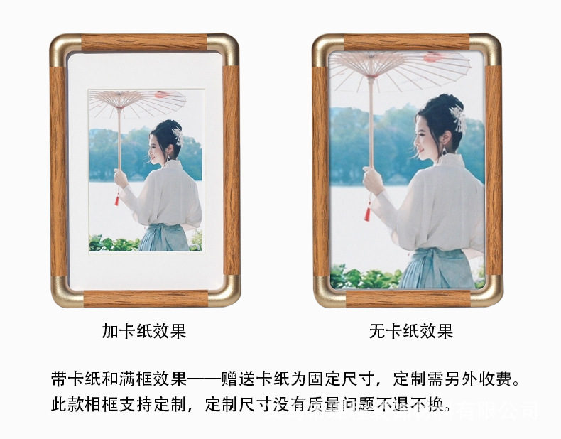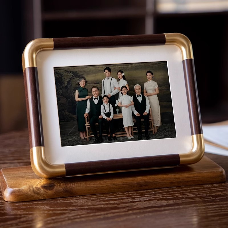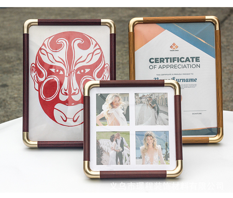 复古中式实木质感仿铜角相框画框圆角相框摆台批发新中式高级感