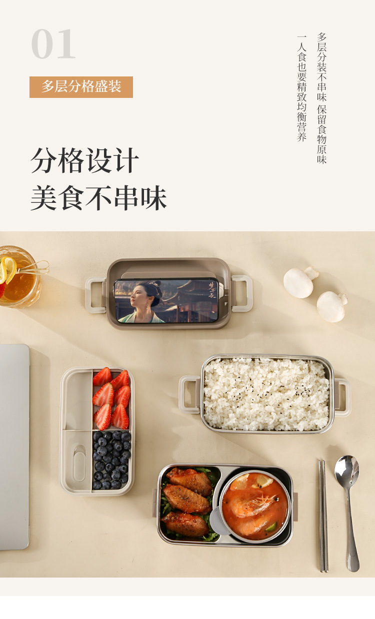 不锈钢304可加热保温饭盒学生上班族食堂便携多层便当盒带盖餐盒