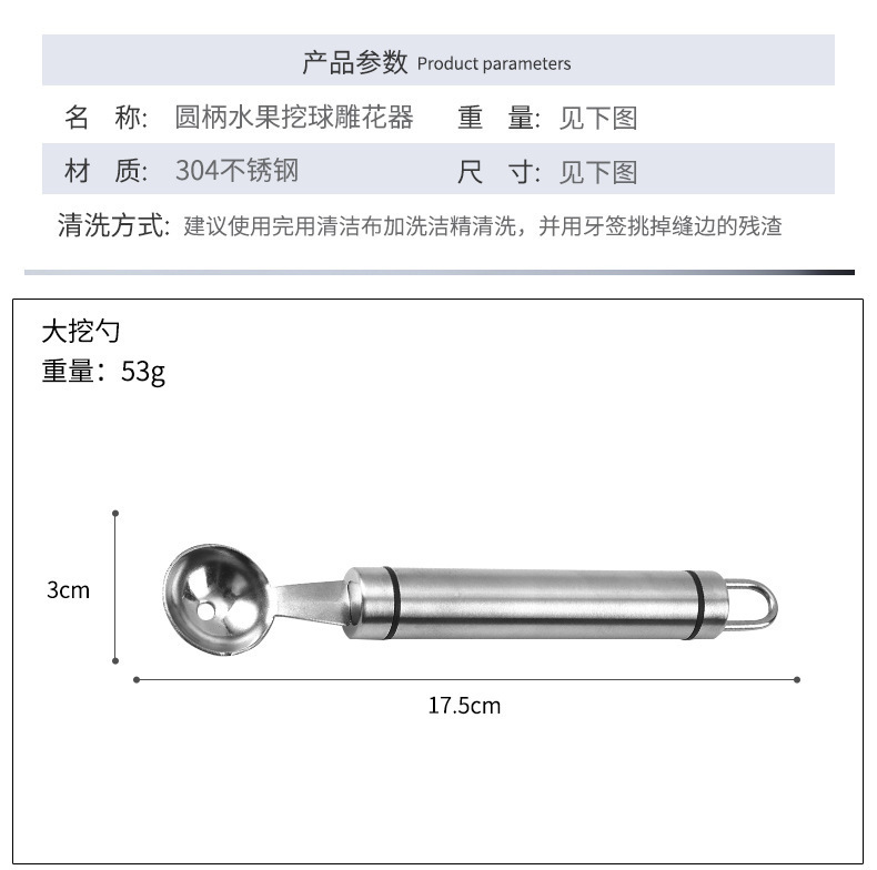 品名:不锈钢挖球勺切水果挖球分割器西瓜取肉器雕花刀多功能拼盘工具