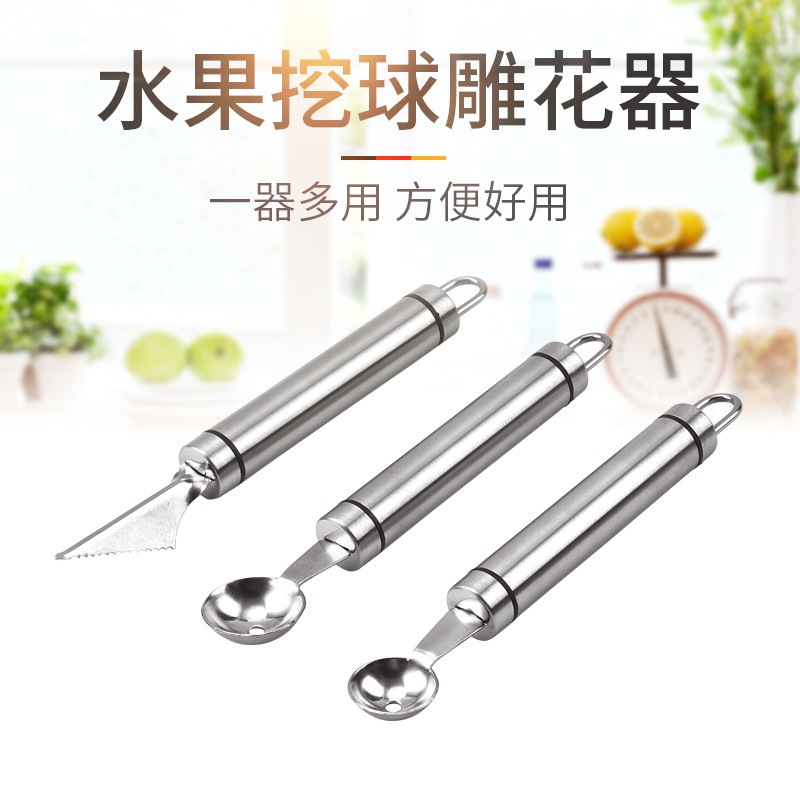 不锈钢挖球勺切水果挖球分割器西瓜取肉器雕花刀多功能拼盘工具