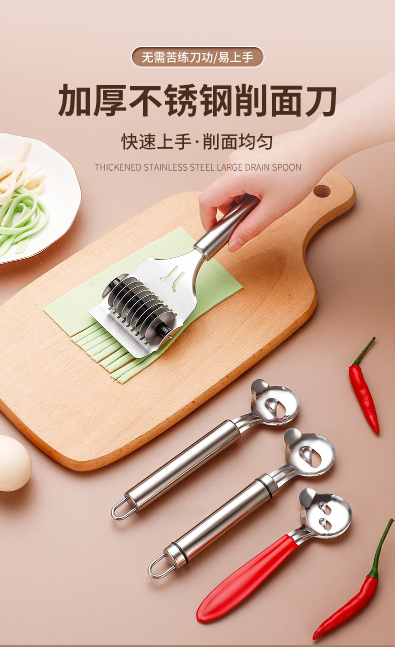 430切面器手动切面刀不锈钢滚轮切面刀厨房小工具家用刀削面神器