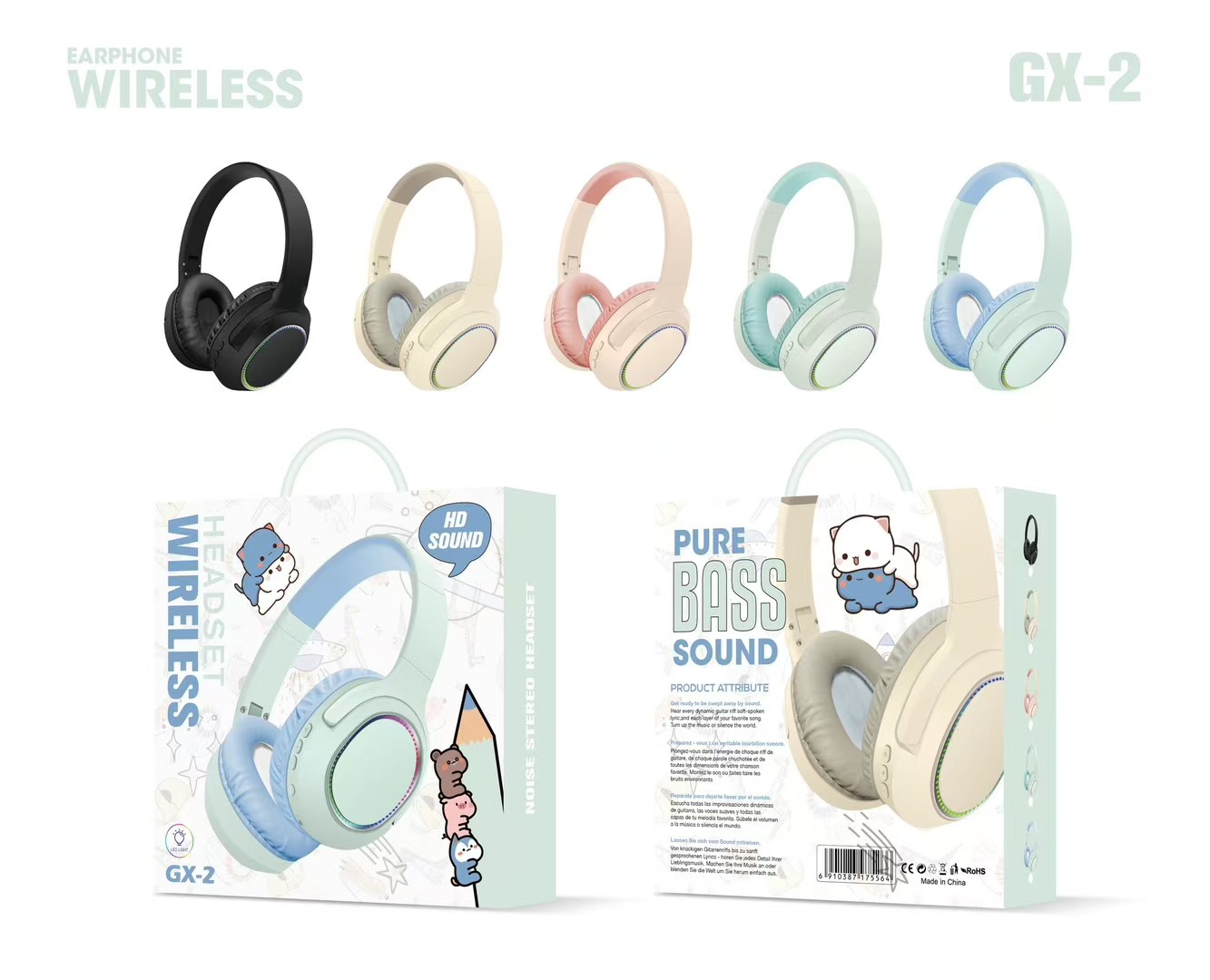GX-2新款高颜值外观发光头戴式蓝牙耳机折叠插卡无线耳麦源头工厂