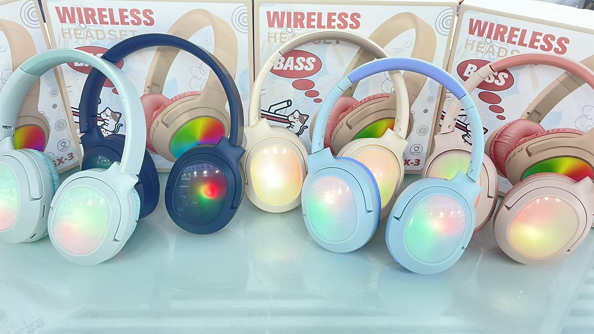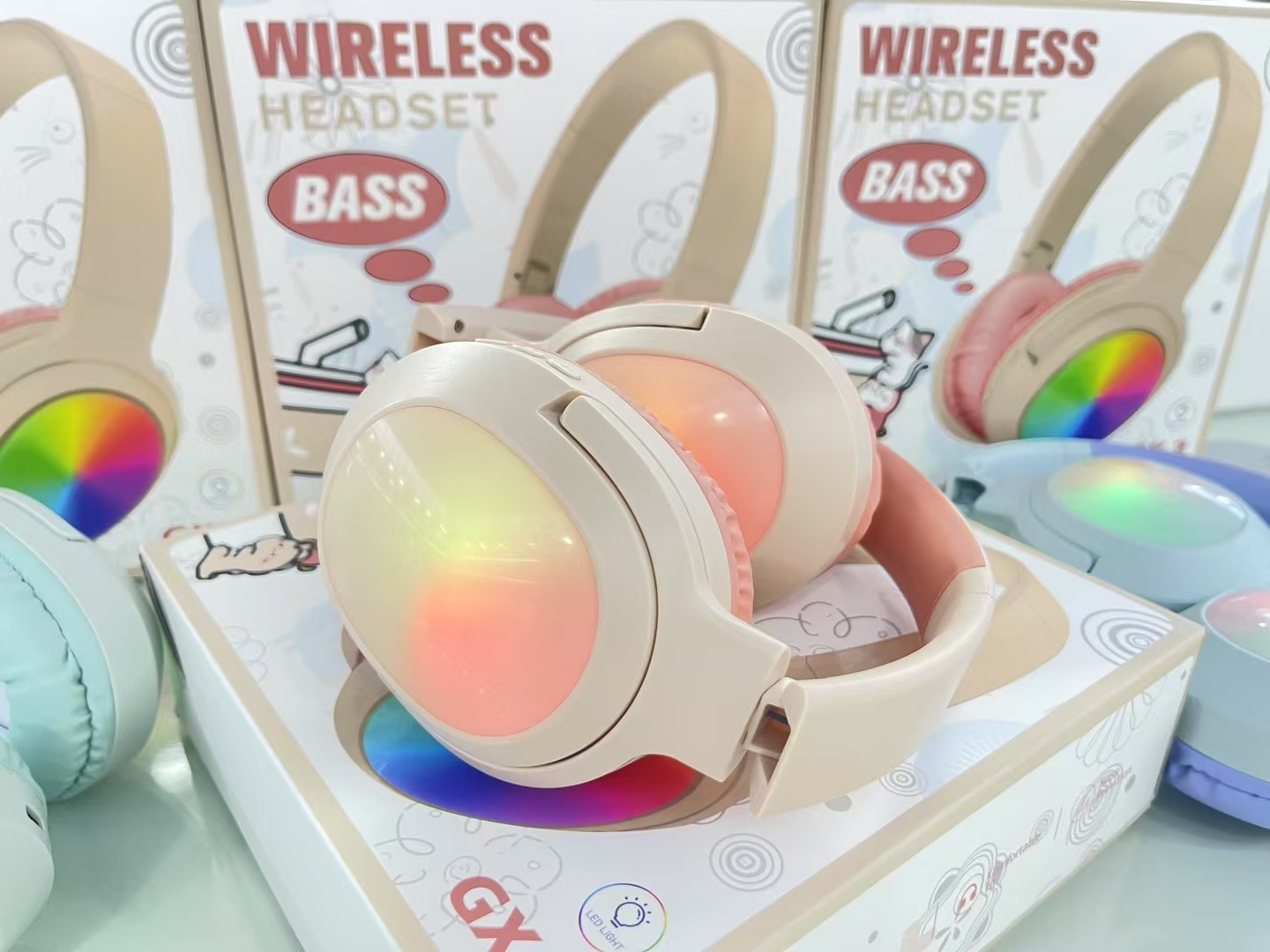 新款GX-3跨境头戴式发光蓝牙耳机可折叠无线蓝牙使用电竞耳机