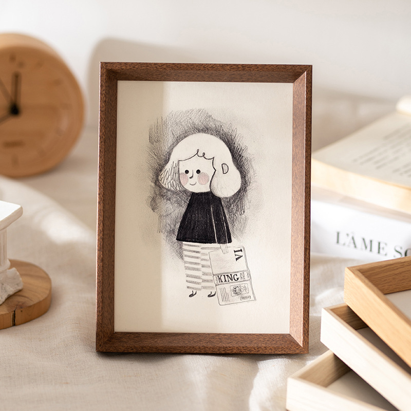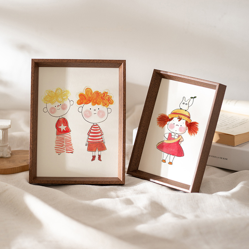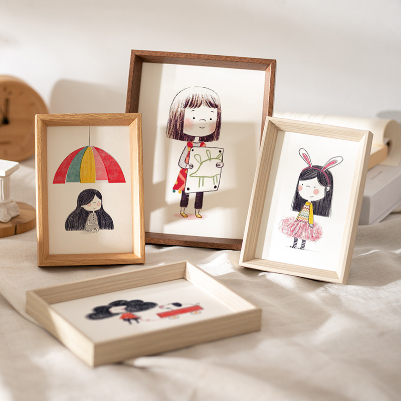 中式斜边木质相框画框批发5寸6寸10寸横框照片摆台客厅装饰挂墙框