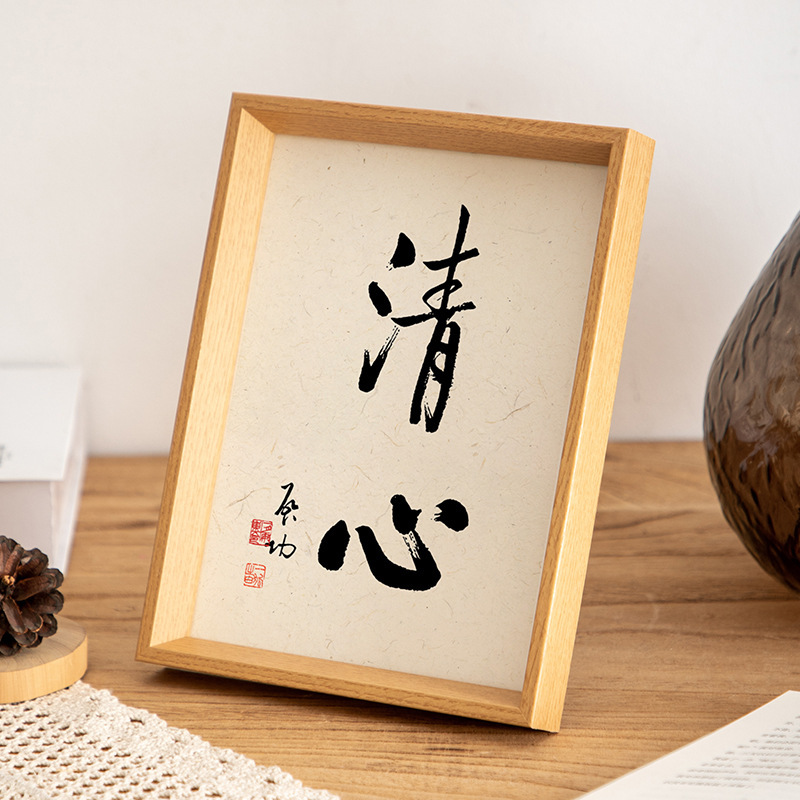 时尚斜角相框中式书法手写手写画框摆件批发实木相框可挂可摆