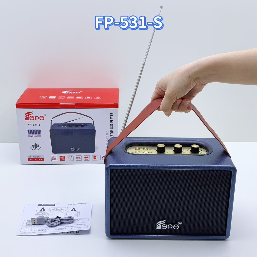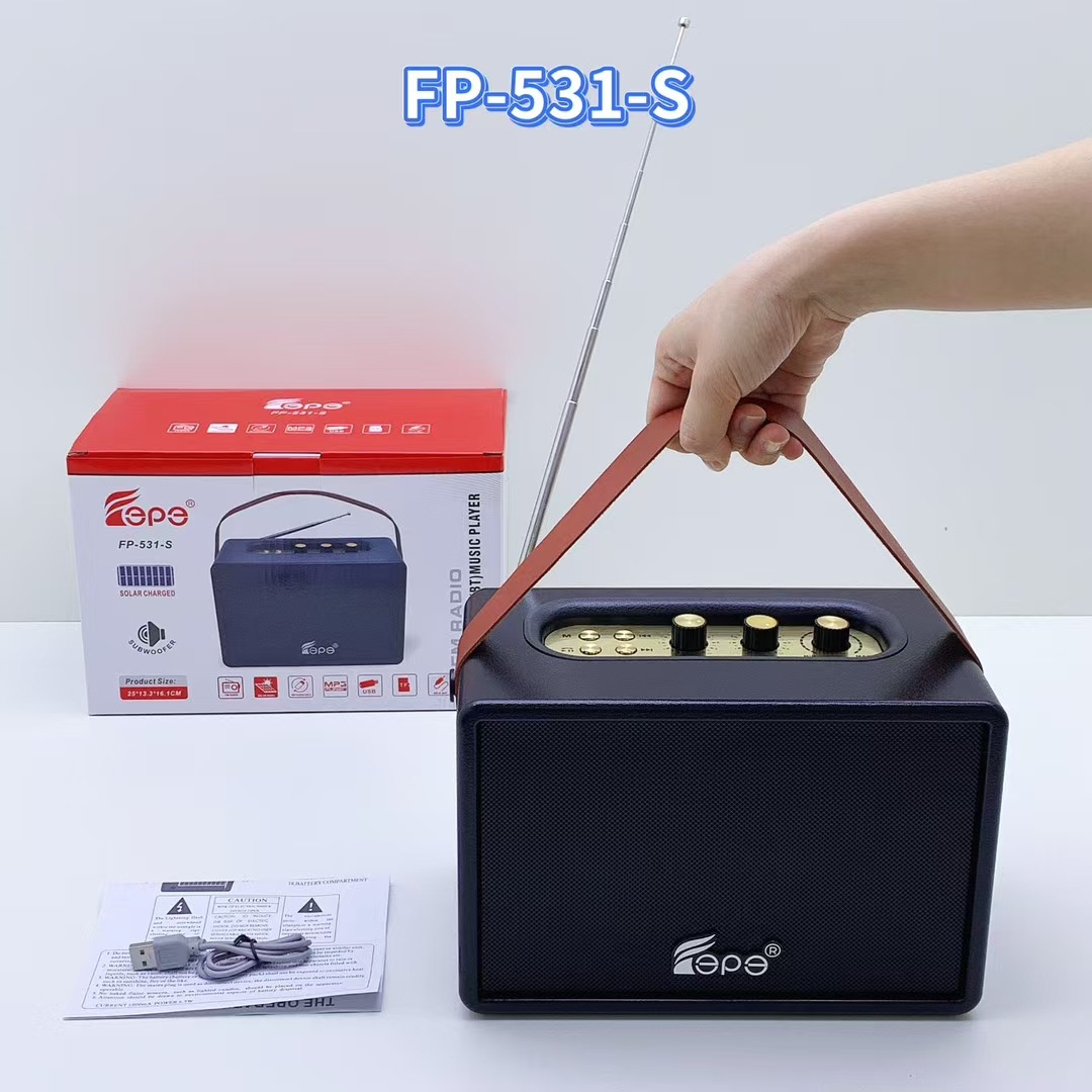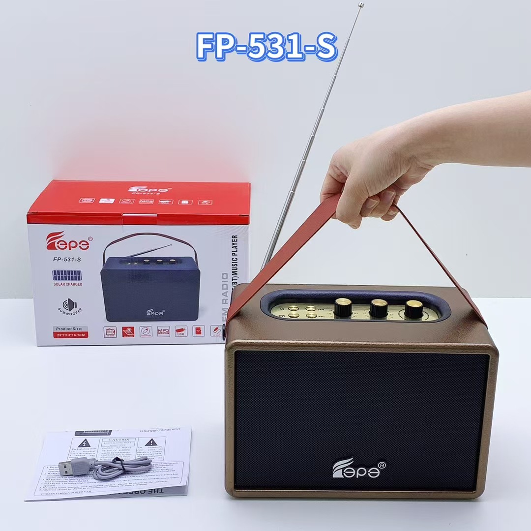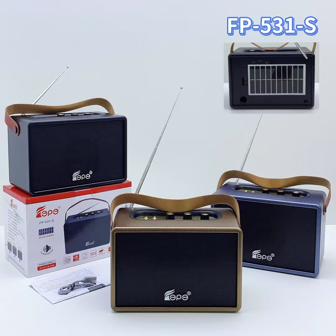 FP-531-S太阳能皮革复古收音机蓝牙音箱手提便携式户外无线低音炮