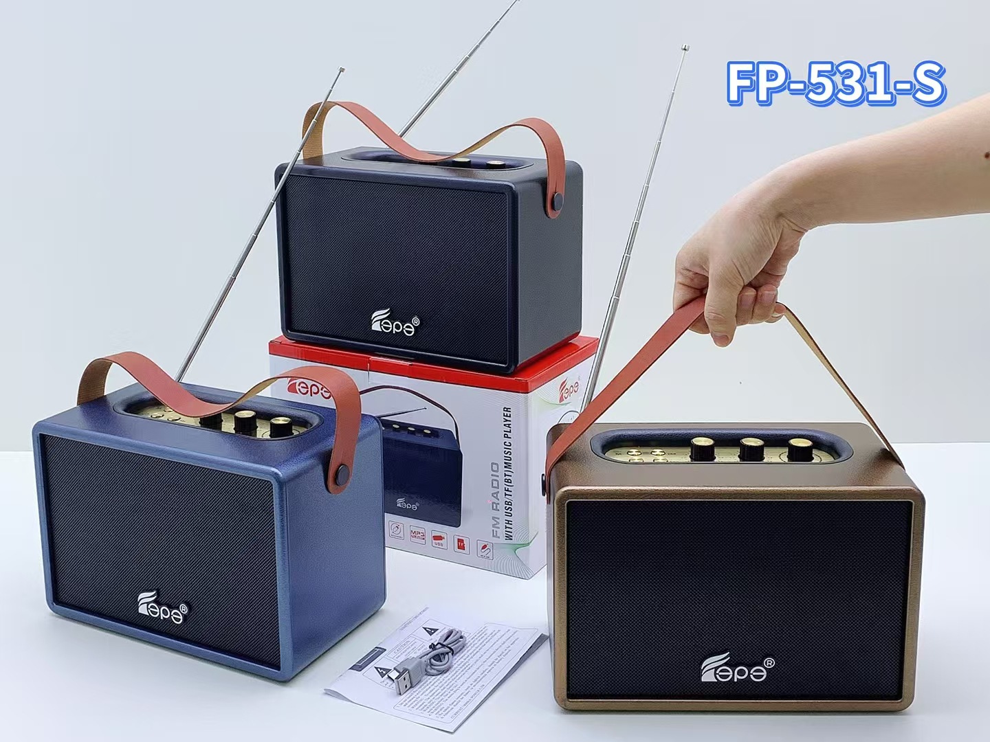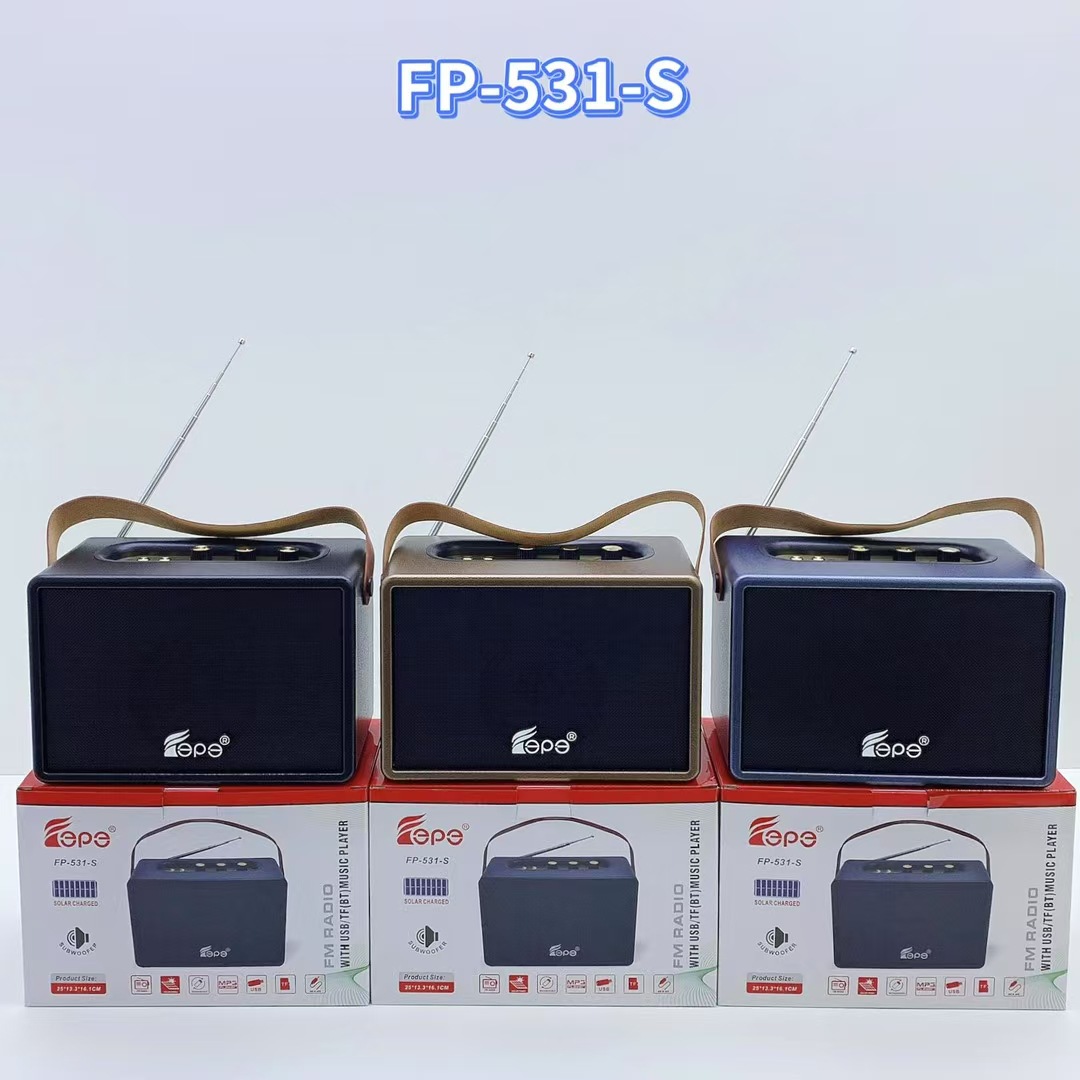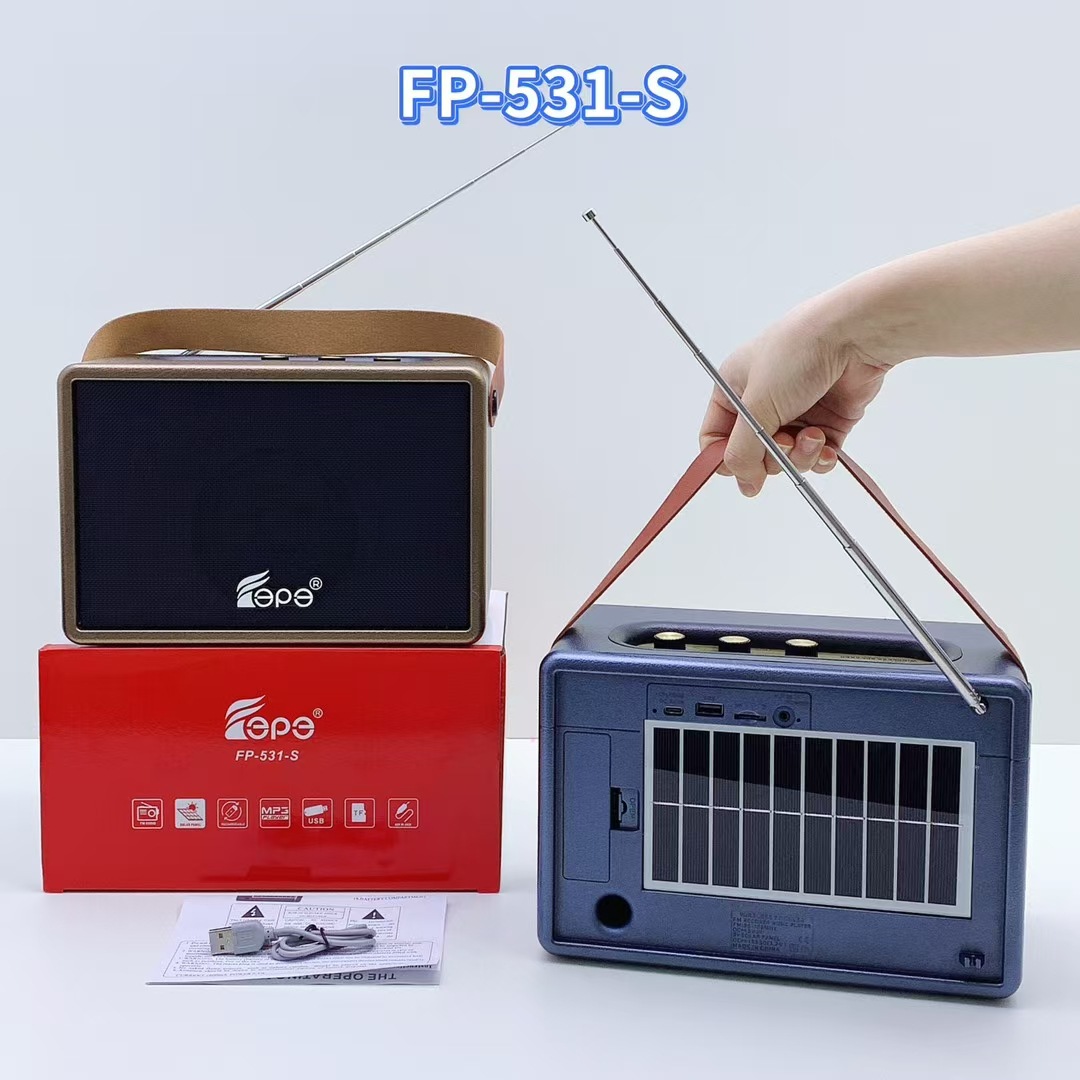 FP-531-S太阳能皮革复古收音机蓝牙音箱手提便携式户外无线低音炮